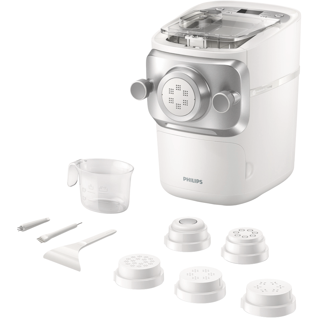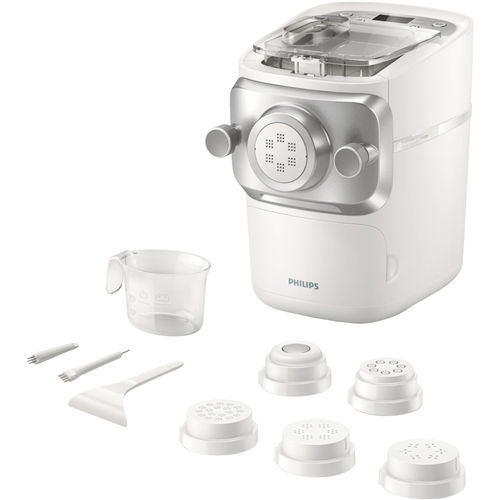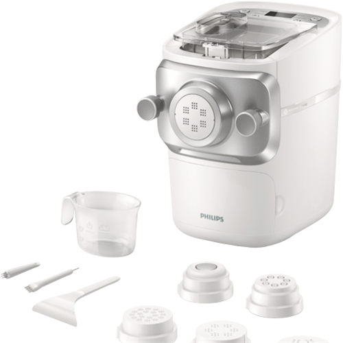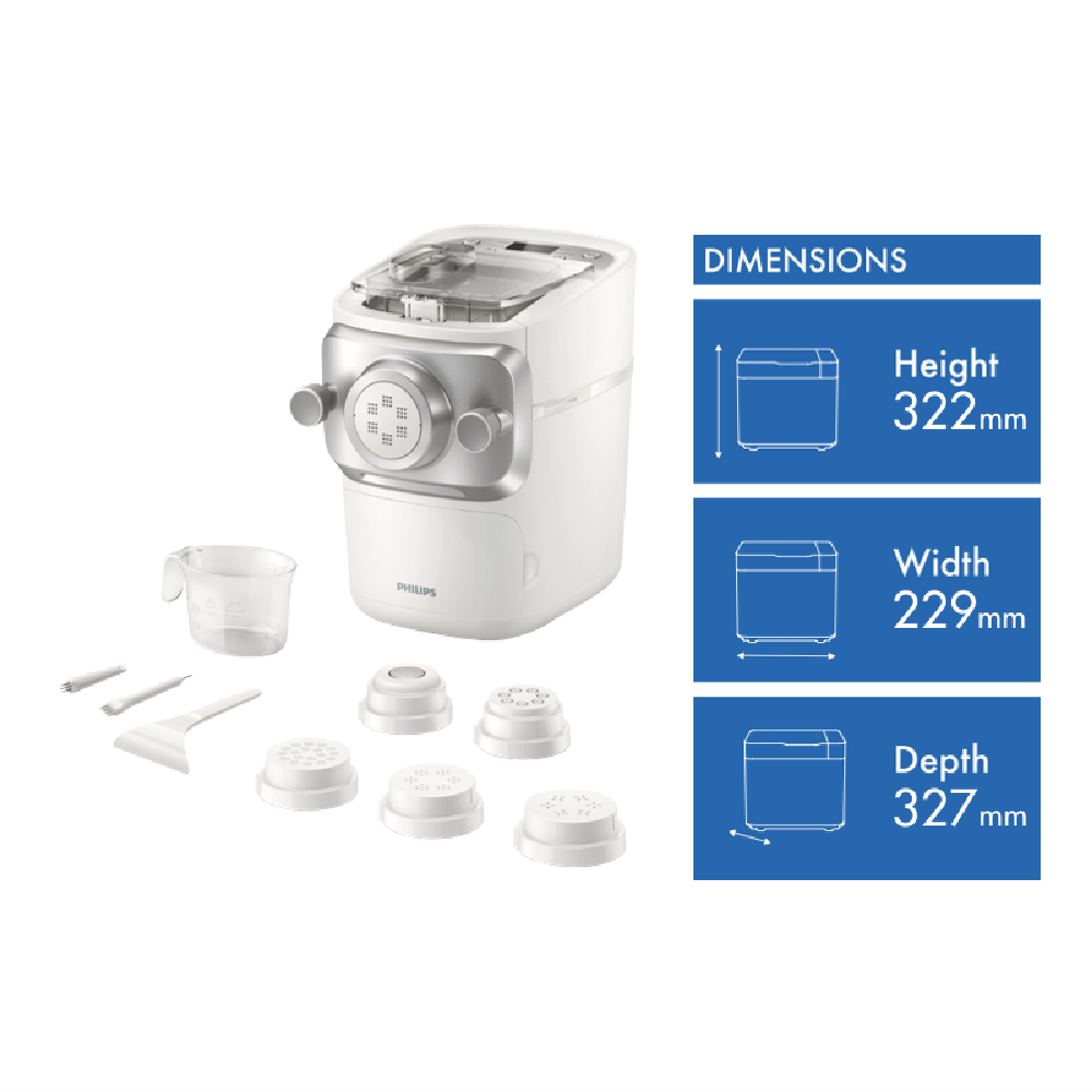 Whip up fresh pasta and noodles with ease using the Philips Premium Pasta and Noodle Maker. This handy kitchen appliance features a 200W motor and dishwasher-safe parts for quick cleanup. With the ability to make up to 8 portions at once you can feed a crowd in no time. The included measuring cup cleaning tool shaping discs and user manual make it a breeze to get started. Plus the Philips HomeID app provides access to tons of tasty recipe ideas. Measuring 322mm H x 229mm W x 327mm L and weighing 6810g the Philips HR2660/00 pasta maker is a compact yet powerful addition to your kitchen.