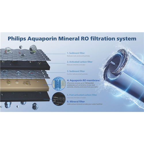 Additional Features Aquaporin Inside Reverse Osmosis, Alkaline Mineralization added back after filtration