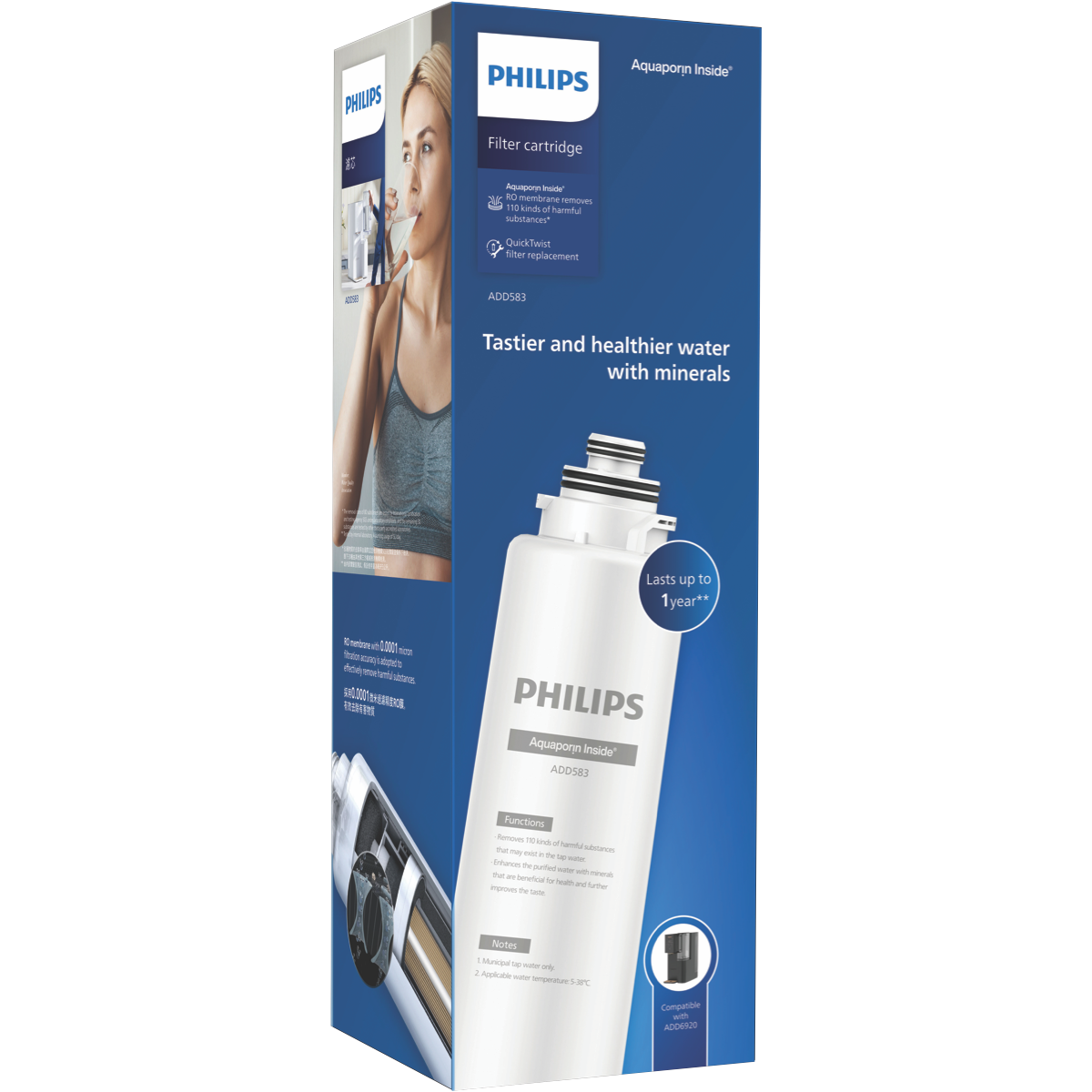 Experience the power of healthy clean drinking water with the Philips Aquaporin Mineral RO Filter. This innovative water filter utilizes advanced membrane technology to effectively reduce impurities and contaminants delivering fresh filtered water right to your tap. The Aquaporin filter is designed for reliability and convenience with a generous 2L capacity and quick easy installation. Simply attach it to your faucet and enjoy cleaner better-tasting water for drinking cooking and more. With its sleek white design the filter adds a touch of modern style to any kitchen. Rest assured this Philips filter will continue delivering optimized performance for up to a full year thanks to its durable construction and long-lasting filter membrane. Savor pure water on demand and take the first step towards a healthier lifestyle with the Aquaporin Mineral RO Filter. The manufacturer's part number for this product is ADD583/79. Bring home this innovative filter for your family today.