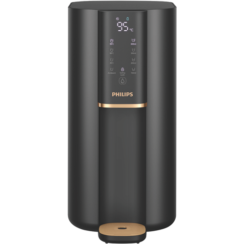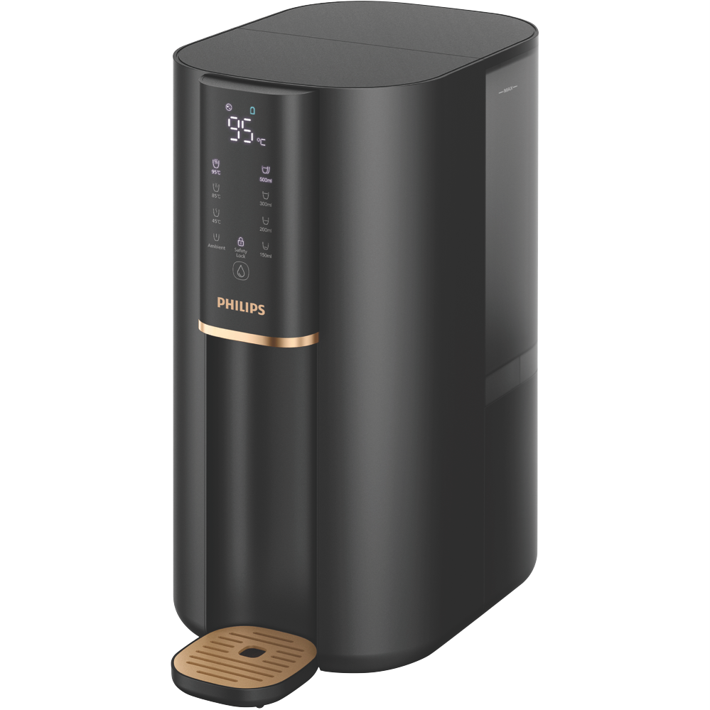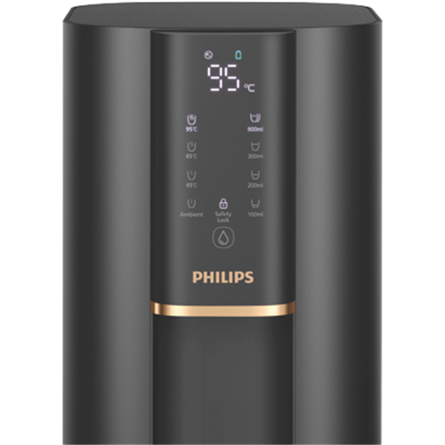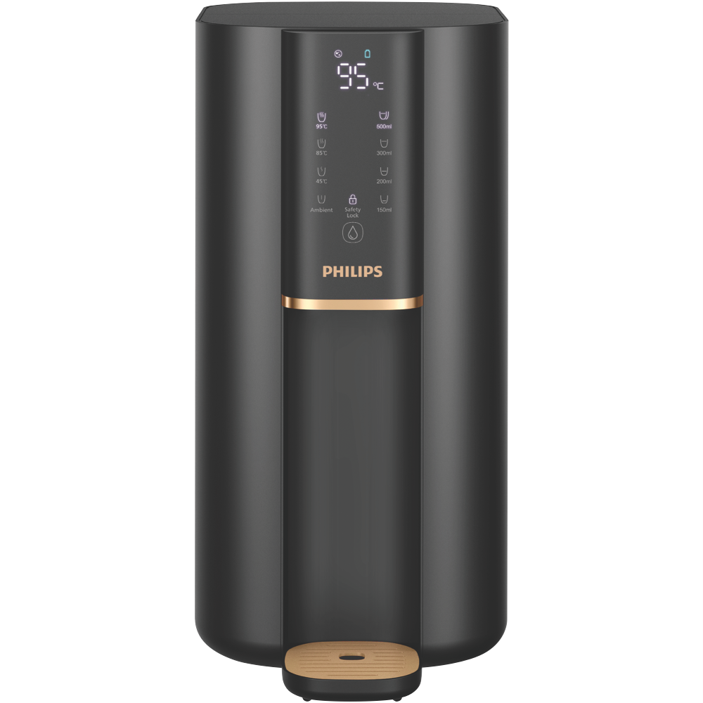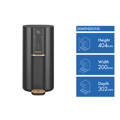 How could this Philips water station enhance your hydration game? With its 4 liter raw water tank capacity and 5 stage filtration you can enjoy purified water at the perfect temperature ambient 45°C or 85°C. The ADD6901HBK01/79 model reduces pesticides water hardness lead and chlorine for a cleaner fresher taste. Plus you can choose your ideal serving size from 150ml to 500ml. Boasting a sleek black design and an impressive 2000L filtration capacity this water station is built to last with a 2 year manufacturer's warranty. Elevate your daily hydration routine with Philips.
