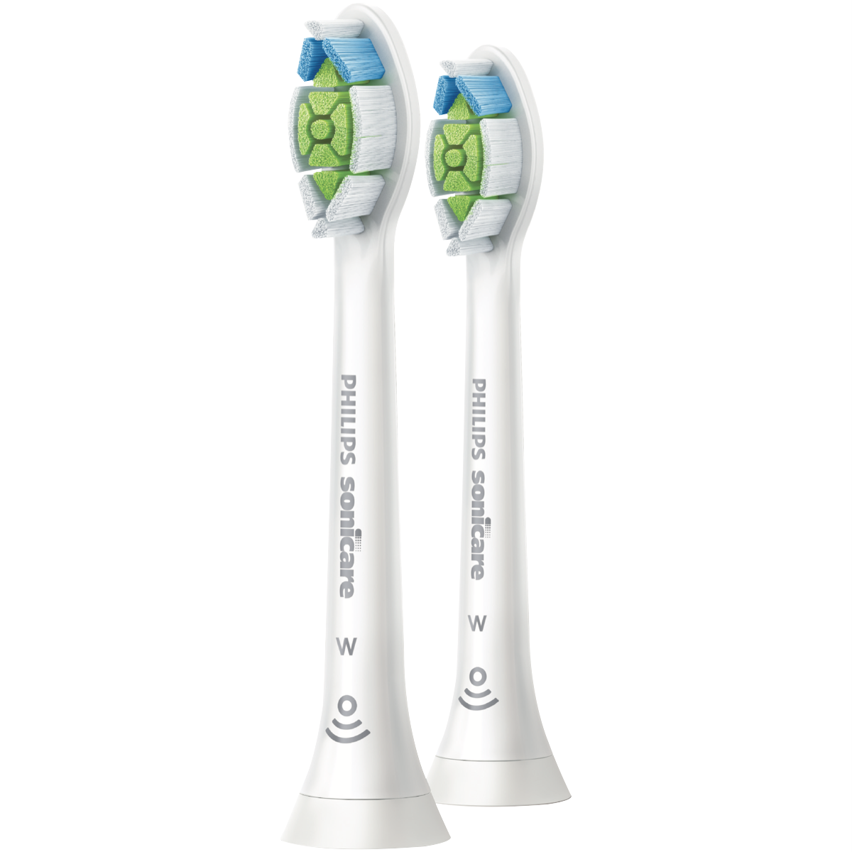 Replace your Philips Sonicare toothbrush heads every 3 months for optimal cleaning results with this 2 pack of W2 Optimal White brush heads. These click-on replacement heads are compatible with most Philips Sonicare electric toothbrushes including the 2 Series 3 Series DiamondClean FlexCare HealthyWhite and more. The unique contoured bristles are clinically proven to remove up to 7 times more plaque than a manual toothbrush. Enjoy whiter teeth in just 1 week with the specially designed polishing cups that remove surface stains. The W2 Optimal White brush heads click on and off your Philips Sonicare handle for easy replacement and cleaning. With a 2 year warranty and Philips' reputation for quality these replacement heads are built to last. Give your teeth the superior clean they deserve. The manufacturer's part number for this product is HX6062/67. Choose this 2 pack of Optimal White brush heads today for a whiter healthier smile.