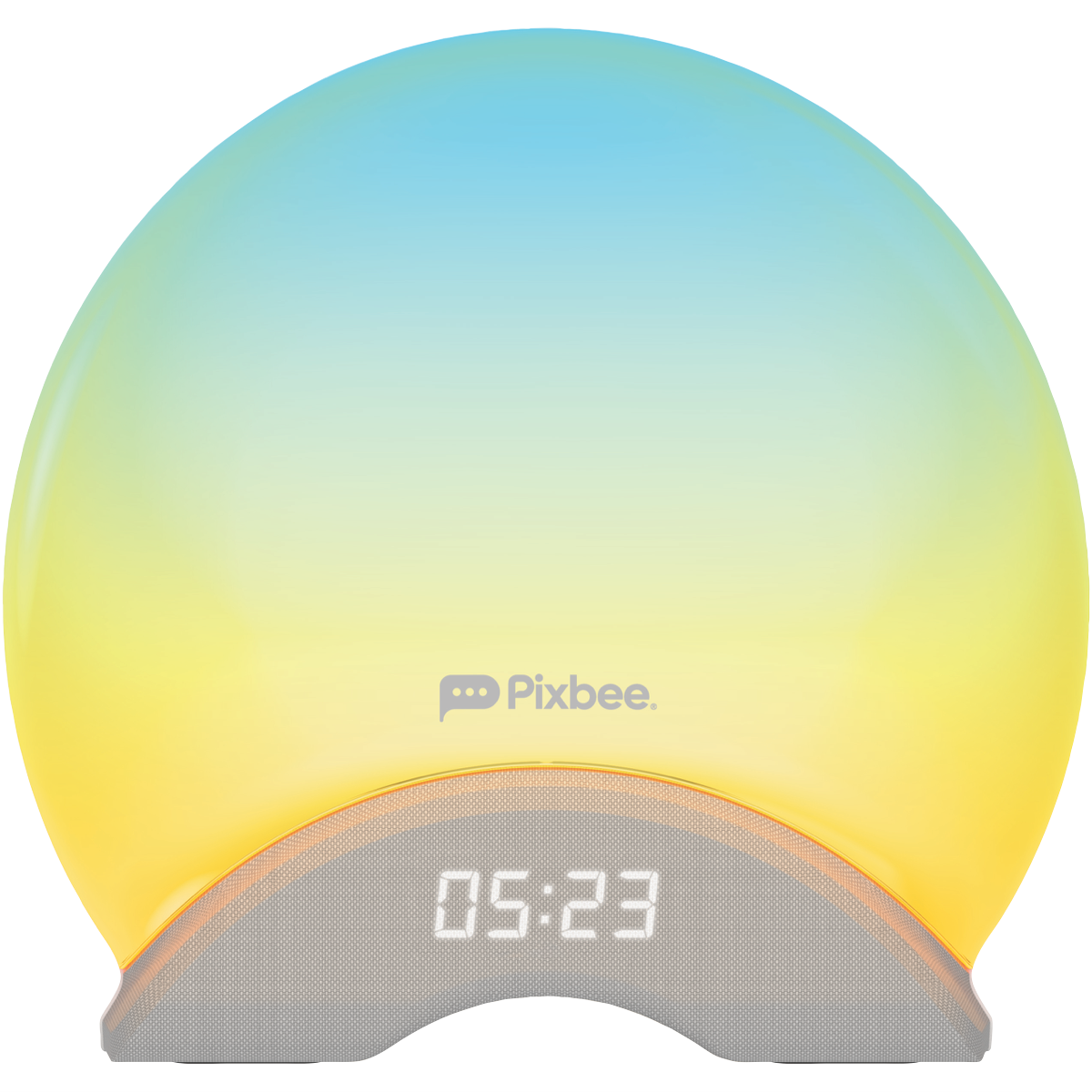 Wake up refreshed and energized with the Pixbee Alarm Clock Smart Wake Up Light. This innovative alarm clock mimics a sunrise to gently wake you up transforming night into day through its soft glow that brightens from a warm candlelight to bright sunshine over a 20-30 minute period. With its modern LED technology and wide colour range from 2000K to 4000K the Pixbee creates the perfect environment to start your day feeling positive and productive. Compatible with iOS 9.0+ and Android 5.0+ this smart lighting alarm clock can be controlled remotely via Wi-Fi and your mobile device. It also works seamlessly with voice assistants like Amazon Alexa and Google Assistant for hands-free operation. The Pixbee light alarm clock features a long-lasting 25000 hour bulb and 1 year manufacturer's warranty for peace of mind. With its bright 350 lumens programmable sunrise and sunset lighting and built-in ambient sounds this is the ideal alarm to wake up refreshed energized and ready to seize the day. The manufacturer's part number for this product is PXB-103L. Check out the Pixbee Alarm Clock Smart Wake Up Light today to transform your mornings.