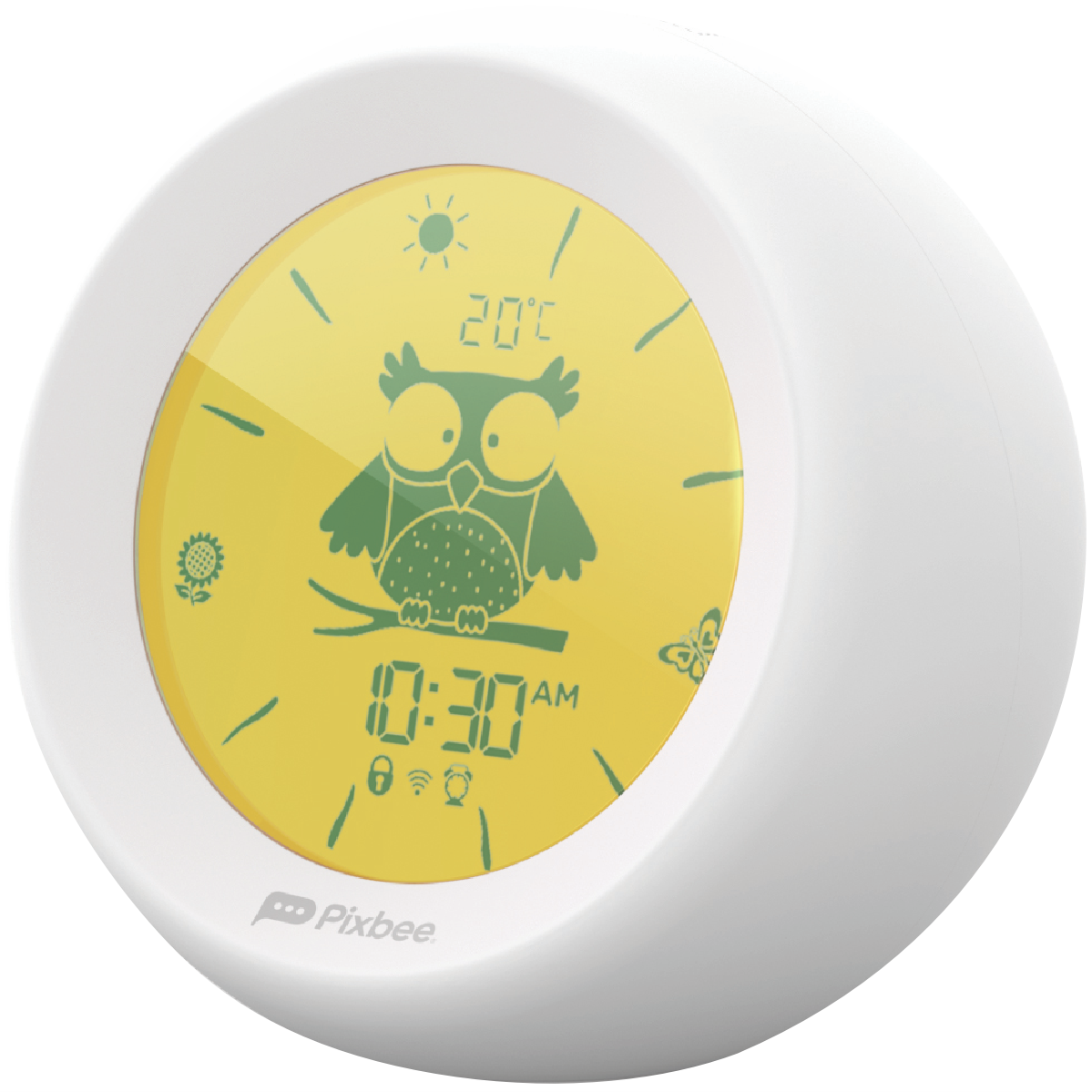 Give your little one the gift of peaceful slumber with the Pixbee Baby Smart Sleep Trainer. This innovative sleep light pairs with your mobile device to provide a soothing bedtime routine. Designed to work with Amazon Alexa and Google Assistant you can control settings hands-free to play lullabies project calming lights and more. The 2.5W speaker fills the room with your choice of music nature sounds or white noise to lull your baby to sleep. Customize schedules light shows and audio to establish an ideal wind-down program. This Wi-Fi enabled sleep trainer has a range of over 15m so you can adjust settings even when you're not in the nursery. The free Pixbee app grants remote access from iOS or Android devices for effortless operation. Give your child the consistency and comfort they need for better sleep. This lightweight sleep trainer features a compact modern design that looks great in any nursery. It has an integrated rechargeable battery for cordless placement anywhere. Help your little one drift off to dreamland with the Pixbee Baby Smart Sleep Trainer. The manufacturer's part number for this product is PXB-100L. Check it out today.