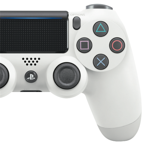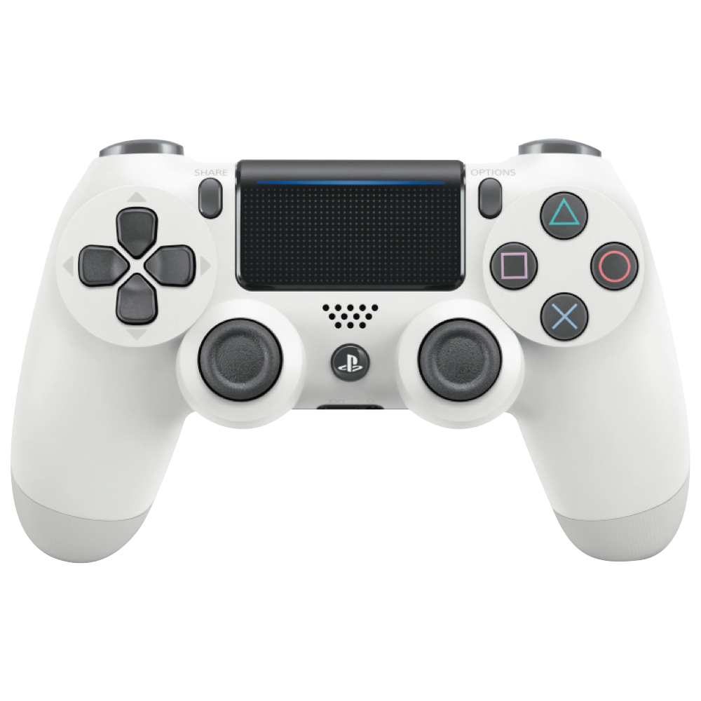Take your gaming to new heights with the Playstation 4 Dualshock Controller in Glacier White. This wireless controller features highly sensitive motion controls enabled by a built-in sensor allowing you to make the most of compatible games. The touch pad and curved L2 and R2 buttons give you greater control and more ways to interact taking your gameplay to the next level. With a classic comfortable design and intuitive controls this controller makes gaming immersive. Stay focused on the action with the responsive buttons analog sticks and triggers while the integrated speaker and headset jack let you chat with friends mid-game. Compatible with PS4 consoles this controller connects via Bluetooth for gaming without wires. Customize controls swap between profiles and charge your controller as you play thanks to the extension port. The manufacturer's part number for this product is 130784. Check out this controller to enhance your PS4 experience today.