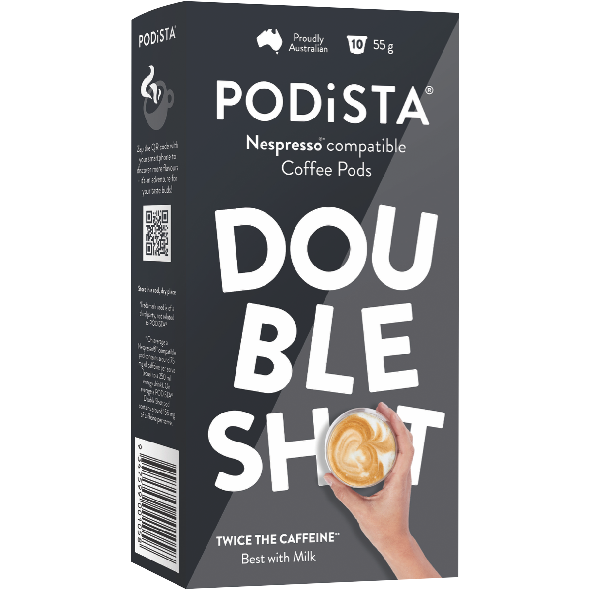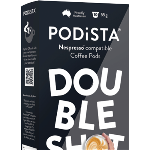 Step up your coffee routine with the PODiSTA Double Shot Coffee Pod. This is the perfect way to brew a bold and rich espresso-style coffee at home with minimal fuss. Simply pop one of these coffee capsules into your compatible pod coffee machine and let the intense aromas of freshly ground coffee beans transform your kitchen. With a double shot of coffee in each pod you can enjoy a smooth coffee with a robust full-bodied flavor that will give you the energy boost you need to seize the day. The intense taste and heavenly aroma of these coffee capsules make them a must for coffee lovers who want a quick and easy way to enjoy a quality brew. So treat yourself to a premium coffee experience with the convenience of PODiSTA's double shot coffee pods. The manufacturer's part number for this product is 200028.