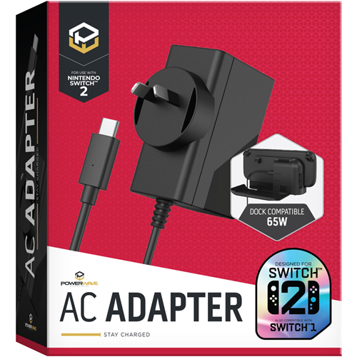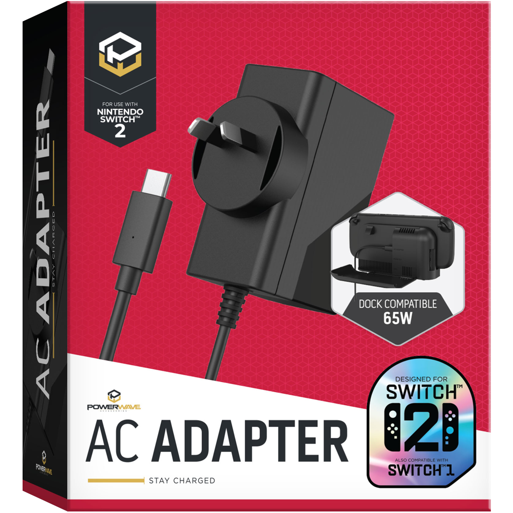 Keep your Nintendo Switch 2 powered up and ready for action with this dedicated USB-C power adapter. Designed specifically for the Nintendo Switch 2 platform this black gaming power adapter ensures your console stays charged whenever you need it. The compact adapter comes in a box measuring just 120mm x 40mm x 100mm making it easy to store or take with you for gaming on the go. Backed by a 1-year manufacturer's warranty for peace of mind. Model 170247.