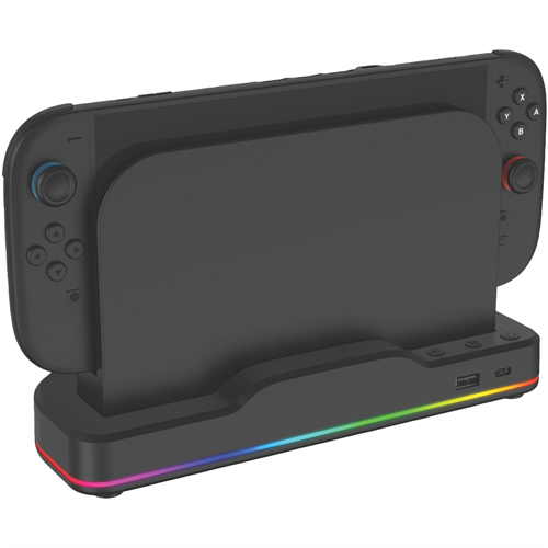 Keep your Nintendo Switch 2 cool during those intense gaming sessions with this black cooling stand. Designed specifically for the Nintendo Switch 2 it helps maintain optimal temperature while you play extending your console's performance during marathon gaming sessions. The stand's RGB lighting adds a stylish touch to your gaming setup creating the perfect atmosphere for immersive gameplay. Backed by a 1-year warranty for peace of mind. Model 169395.