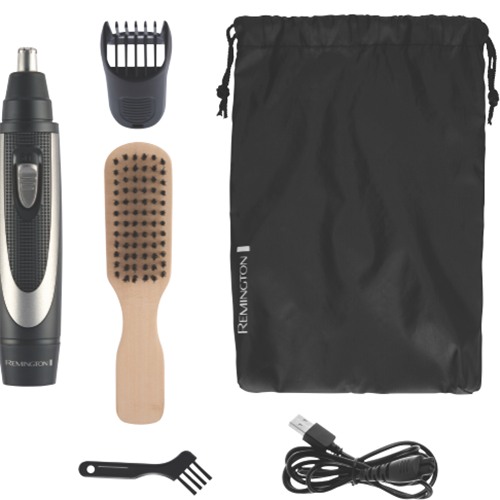 • Stubble comb, adjustable comb, beard brush, storage pouch