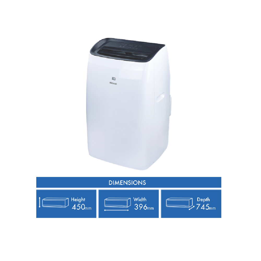 Looking for a portable air conditioner to cool down small to medium-sized rooms this summer? The Rinnai C4.1kW Cooling Only Portable Air Conditioner is a powerful yet portable solution for efficiently cooling your home. This sleek white unit combines 4.1kW of cooling capacity with convenient portability and easy installation to deliver chilled air whenever and wherever you need it. The built-in sleep function allows you to drift off in cool comfort while the included timer gives you precise control over runtimes to help minimise energy usage. With a height under 400mm and easy rolling castor wheels the Rinnai Portable Air Conditioner can be moved from room to room or tucked away into storage. Stay cool in style and convenience this summer with the Rinnai C4.1kW Cooling Only Portable Air Conditioner. The manufacturer's part number for this product is RPC41NC.
