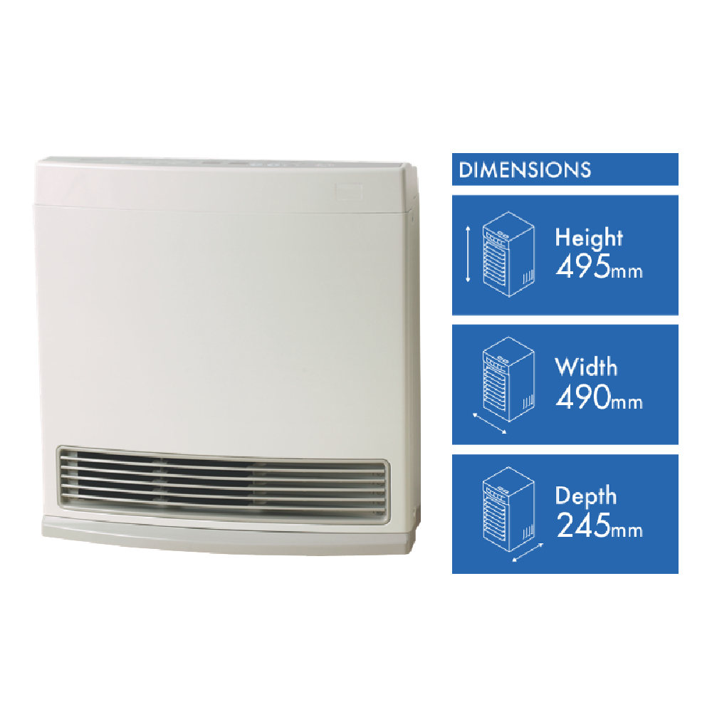 This compact Rinnai Enduro 13 EN13N unflued natural gas heater is designed to suit a smaller living space with features including fully thermostatic control low emissions technology and a 5.8 energy efficiency rating for power bill savings. Its Economy mode helps reduce running costs by gradually reducing the heat setting once the room has maintained the set temperature for one hour; also preventing discomfort from overheating. The Rinnai Enduro gas heater has delay on and off countdown timers so you can specifically choose the time you want your heater to turn on or off while a child lock offers peace of mind when in operation. Effectively and efficiently heat the smallest room in your home and enjoy cosy warmth thanks to this portable Rinnai Enduro 13 natural gas heater.