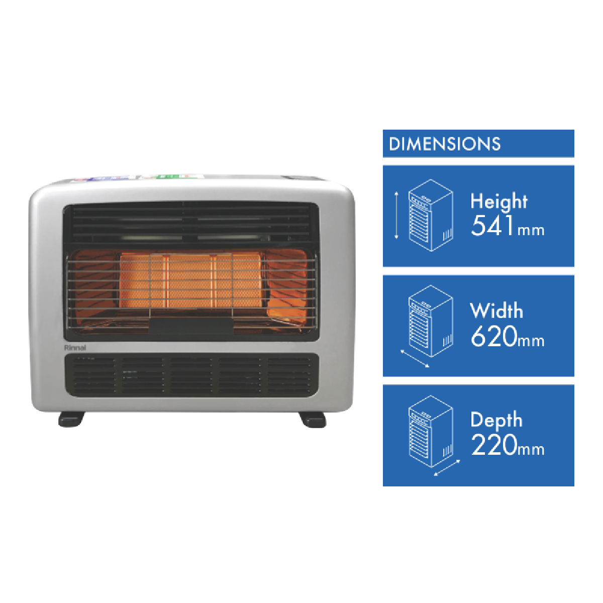 Bring luxurious warmth into your home with the Rinnai Granada 252 25MJ Silver NG Heater Unflued. This sleek silver gas room heater is designed for seamless installation and delivers efficient heating powered by natural gas or LPG. With a generous 25 megajoule gas input this unflued heater provides plenty of heating capacity to warm open plan living areas up to 110sqm. The stylish silver exterior houses 6000 watts of power and an impressive 5.9 star energy rating for energy efficient heating. Customize your comfort with 3 heat settings while the included remote control lets you easily control the heater from across the room. The spacious 620mm width and 540mm height fit nicely on your wall without dominating while the 220mm depth won't protrude. Rinnai's 5 year warranty provides peace of mind with this quality gas heater designed and tested to Australian Standards. Bring convenient climate control to your home with the Rinnai Granada. The manufacturer's part number for this product is 252SN2.