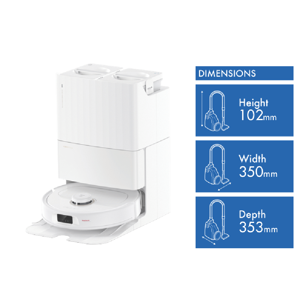 Elevate your cleaning routine to new heights with the Roborock QRevo MaxV Robotic Vacuum. This innovative robot vacuum and mop combo is equipped with advanced features to tackle even the toughest messes on carpets and hard floors alike. The QRevo MaxV harnesses an impressive 7000Pa of suction power ensuring a deep and thorough clean every time. With PreciSense(R) LiDAR sensor technology this robotic vacuum navigates your home with precision effortlessly mapping out the most efficient cleaning path. The generous 330ml dustbin and 80ml water tank allow for extended cleaning sessions while the 5200mAh lithium ion battery provides up to 180 minutes of uninterrupted cleaning time. Enjoy the convenience of Wi-Fi connectivity enabling you to control and monitor your Roborock vacuum from your smartphone or smart home devices like Google Assistant Amazon Alexa and Apple HomeKit. The multifunctional dock not only charges your robot vacuum but also features a warm air drying function to keep the mop cloth fresh and hygienic. The manufacturer's part number for this product is RR-QRMV02-03-WHT. Experience the future of home cleaning with the Roborock QRevo MaxV Robotic Vacuum and enjoy a cleaner healthier living space with minimal effort.