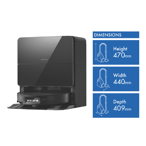 Step into the future of cleaning with this Roborock Saros 10 Robotic Vacuum. It runs for an impressive 220 minutes tackling all types of surfaces with powerful 22000 Pa suction. Pet owners will love its pet-friendly design and E12 filtering. The 2.5L bagged system means less frequent emptying. Using Reactive AI 3.0 with an RGB camera and VertiBeam it navigates your home like a pro. It even works with Google Assistant and Alexa for easy voice control. The vacuum handles both wet and dry messes and its Auto Mop Detachment feature adds convenience. With an Adaptilift Chassis and Dual Anti-Tangle System it's ready for any cleaning challenge. This black robotic helper weighs 16.7kg and measures 409mm x 442mm x 470mm. Enjoy peace of mind with a 2-year warranty. The RR-S1052-03-BLK is your ticket to a cleaner home without the hassle.
