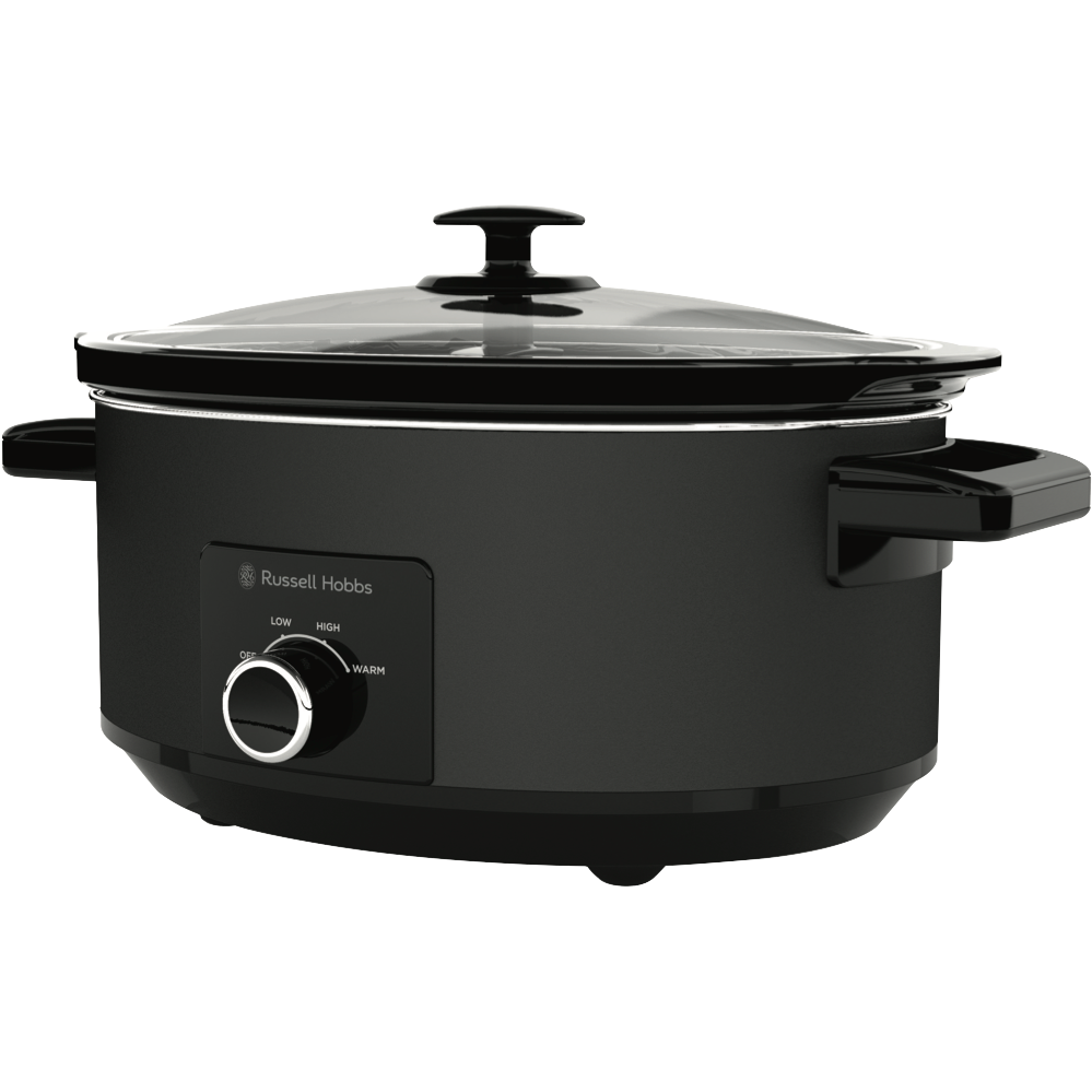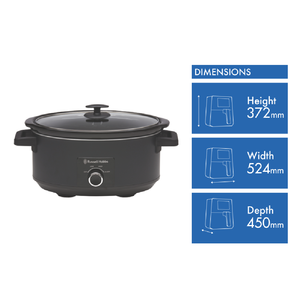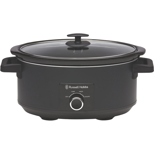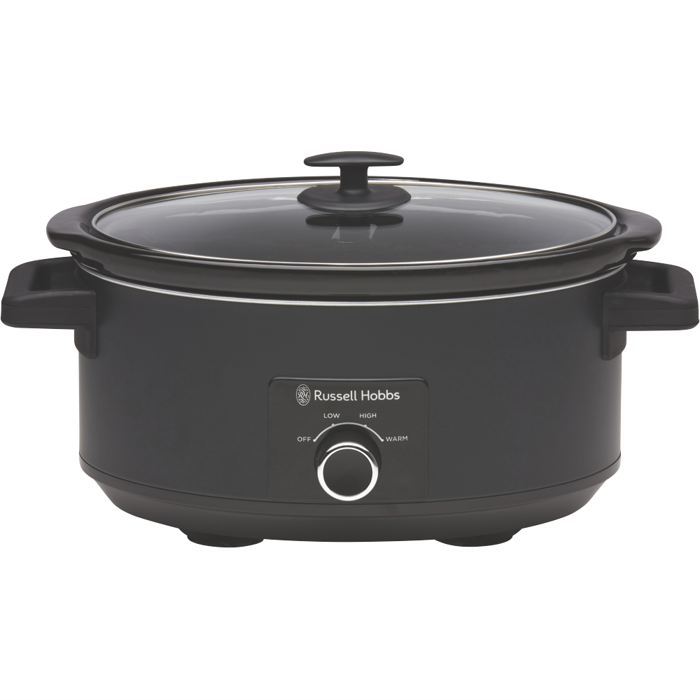 Take your cooking to the next level with the Russell Hobbs 7L Matte Black Slow Cooker. This sleek slow cooker features a generous 7 litre capacity perfect for creating delicious one-pot meals for the whole family. The tempered glass lid allows you to monitor cooking progress without lifting the lid and losing heat. With manual low high and keep warm settings you can cook everything from tender roasts to hearty stews. The removable ceramic bowl goes straight from cooker to table and can be popped in the dishwasher for easy cleanup. With cool touch handles and non-slip feet this cooker is safe and stable on the countertop. Cook up to 8 servings at a time then keep leftovers warm until ready to serve. Bring ease and versatility to your kitchen with the Russell Hobbs 7 litre slow cooker. The manufacturer's part number for this product is RHSC7. Seize the opportunity to enjoy effortless home cooked meals daily with this quality slow cooker.