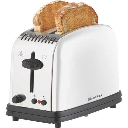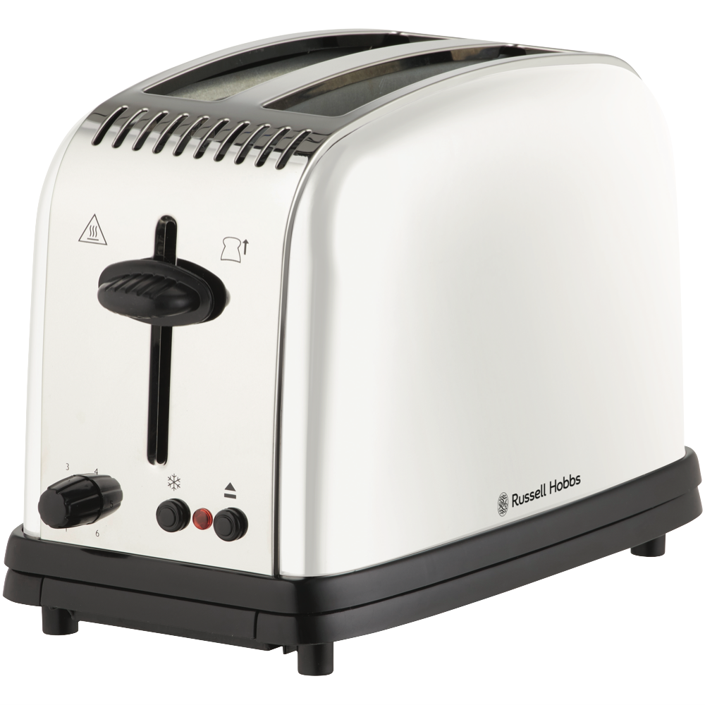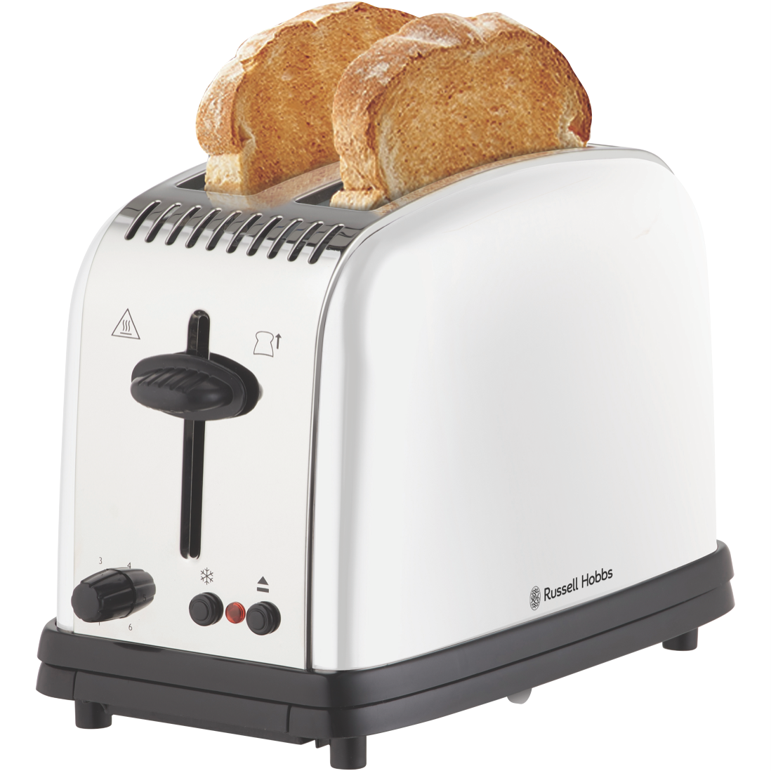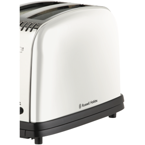 Bring cafe-quality toast to your kitchen with the Russell Hobbs Paddington 2 Slice Toaster. Crafted in brushed stainless steel with a sleek white finish this toaster features self-centring slots to perfectly frame your bread delivering even browning for delicious toast every time. The variable browning control allows you to achieve your ideal shade while the high lift lever makes it easy to retrieve smaller items. With 50% faster toasting technology you can enjoy quicker breakfasts. The removable crumb tray keeps your countertop tidy and cord storage keeps things neat when not in use. Backed by a 2 year manufacturer's warranty this toaster combines thoughtful design with reliable performance. Add a touch of modern style to your kitchen with the Russell Hobbs Paddington Toaster. The manufacturer's part number for this product is RHT12WHI. Check out this toaster and all its features online today.