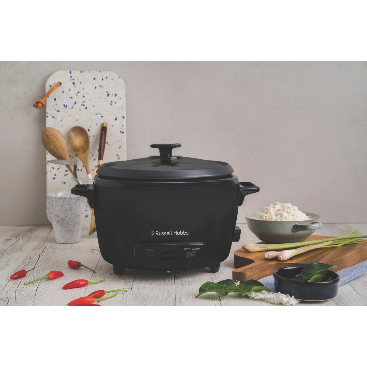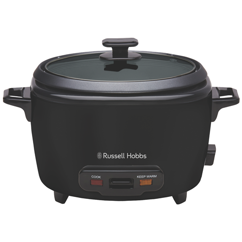 Cook lots of rice 30% faster(1) with the Russell Hobbs Turbo Rice Cooker RHRC20BLK. The understated matte black colour will blend with any kitchen's aesthetic while its maximum capacity of 20 cups of cooked rice inside the non-stick pot to feed even the hungriest of families. Just fill switch on and let it go with 1000W of power as it'll automatically swap to a keep warm mode when the rice is perfectly done. Keep an eye on everything with the tempered glass lid cool touch handles and built in lid holder. Pop the included steam basket in for beautifully cooked vegetables bao or dumplings and stir the pot with an included spoon and measuring cup. Disclaimer: Rice is recommended to be washed before cooking to prevent bubbling over. (1) Based on cooking time at max capacity when comparing against GFMC14.