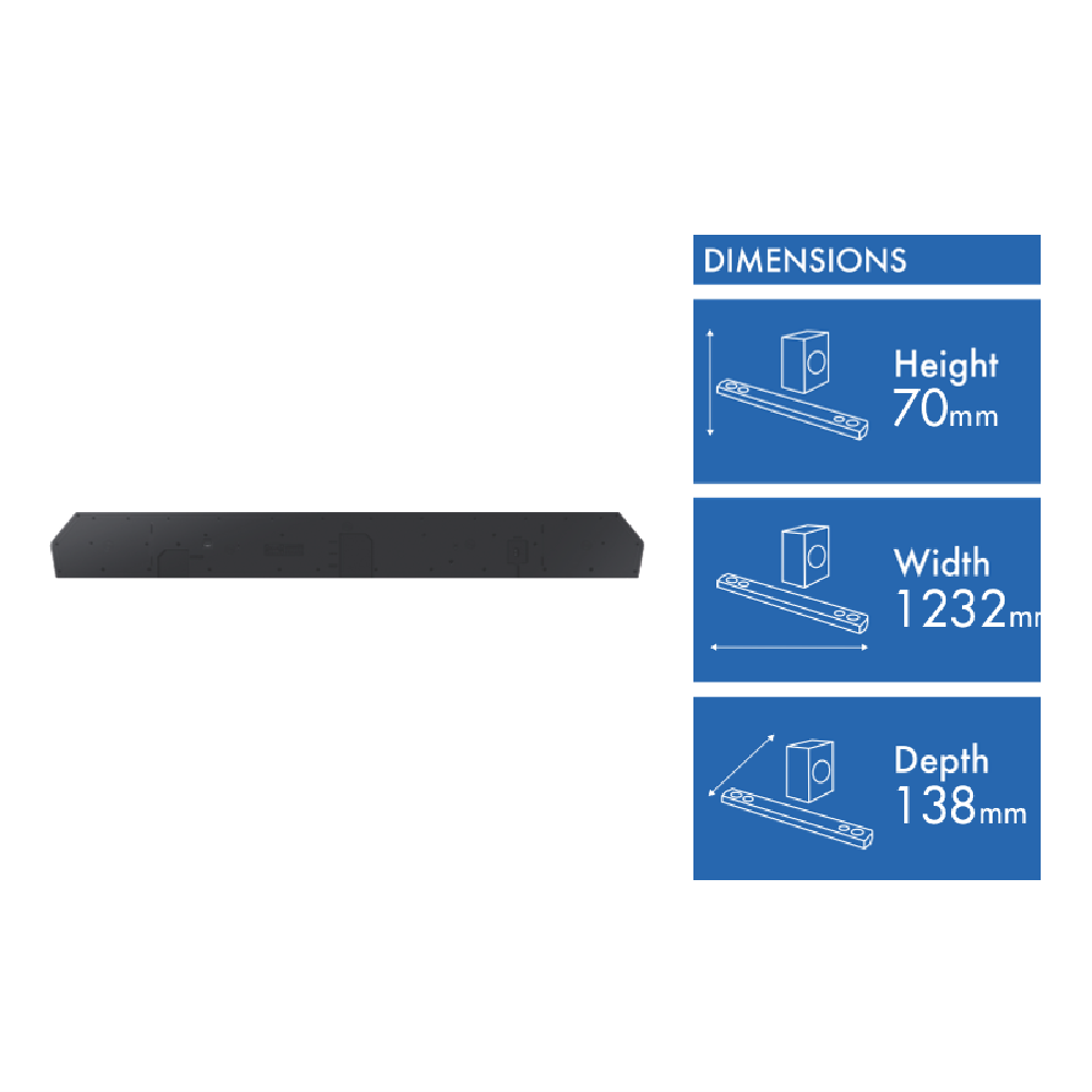 Product Width (mm) Soundbar 1232 Subwoofer 220 Rear Speakers 129.5
