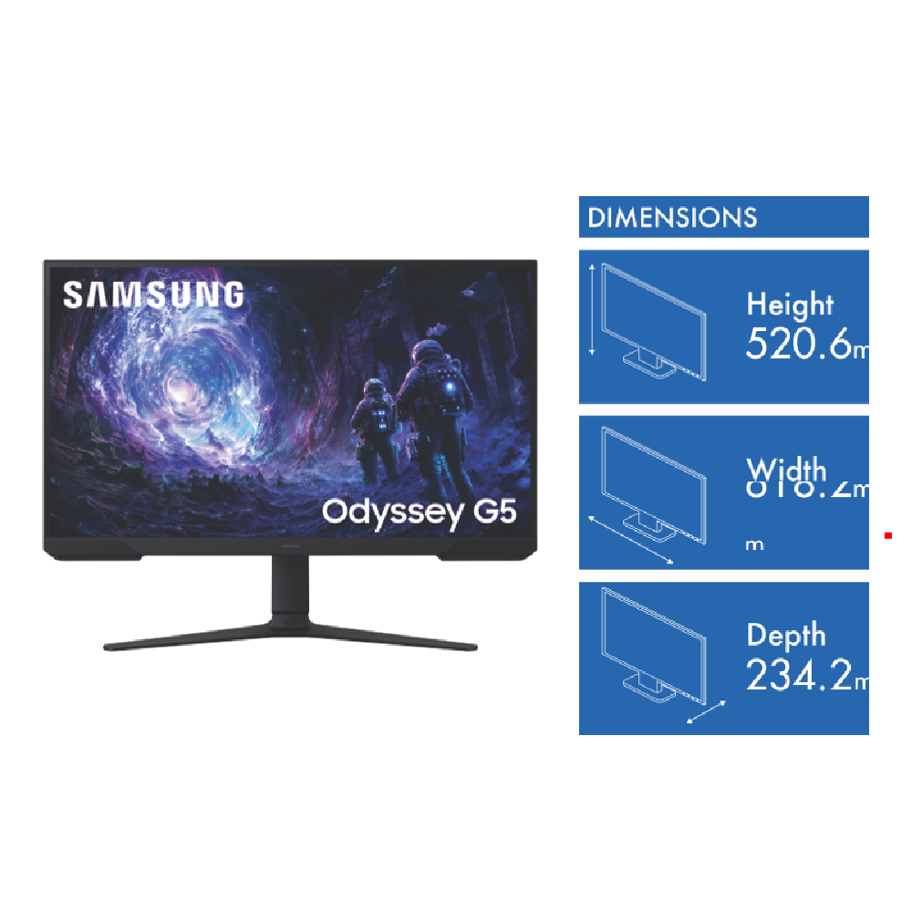 This 27 Odyssey G51F gaming monitor delivers crisp QHD resolution of 2560 x 1440 pixels on its VA panel giving you detailed visuals for both gaming and everyday tasks. With a lightning-fast 180Hz refresh rate and 1ms response time your gameplay stays smooth and blur-free during fast-paced action. The monitor supports AMD FreeSync to eliminate screen tearing while the Black Equalizer and Virtual Aim Point features help you spot enemies hiding in dark areas. Versatile connectivity includes DisplayPort dual HDMI ports and USB plus the fully adjustable stand lets you find your perfect viewing position. Comes with a 3-year warranty. Model LS27FG510EEXXY.