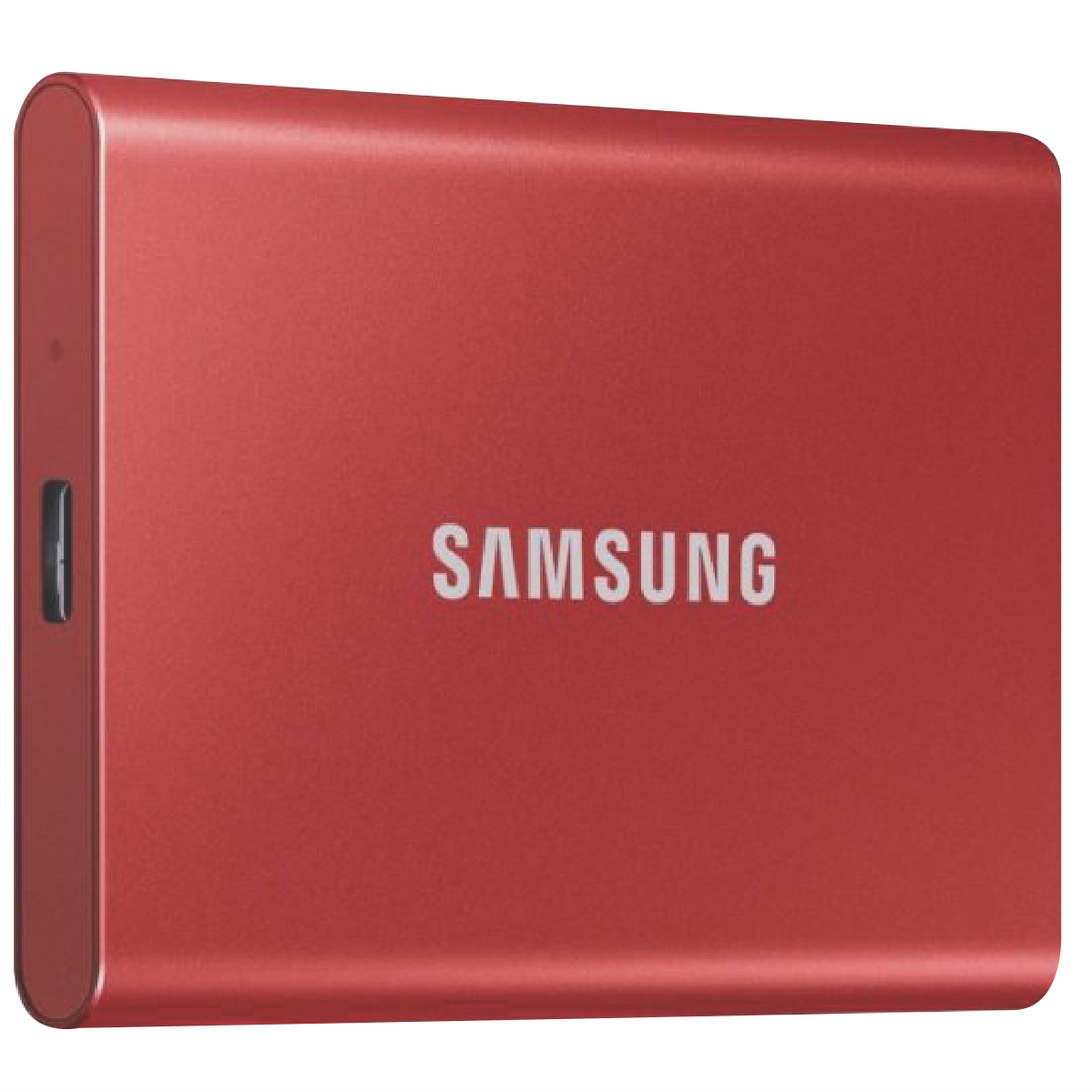 The Samsung 2TB T7 Portable SSD in Metallic Red is your perfect portable storage solution. With blazing-fast transfer speeds of up to 1000 MB/s this solid state drive lets you quickly move large files so you can get more done in less time. The compact lightweight design fits comfortably in the palm of your hand so you can take your data with you wherever you go. Connecting via USB-C this portable SSD offers simple plug-and-play functionality across multiple devices including PCs Macs smartphones and tablets. With massive 2TB capacity you'll have ample space for photos videos documents and more. Measuring just 8mm thin and weighing only 58g the durable Samsung Portable SSD T7 is built strong enough to withstand drops of up to 2 meters. Backed by Samsung's 3 year warranty you can rest assured your data is protected. The manufacturer's part number for this product is MU-PC2T0R/WW. With fast speeds huge capacity and a slim durable design the T7 gives you speed and security in a palm-sized package.
