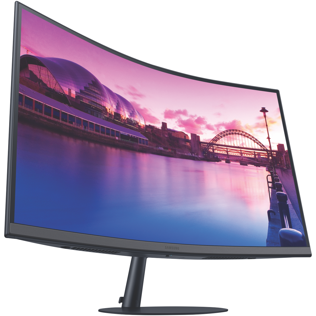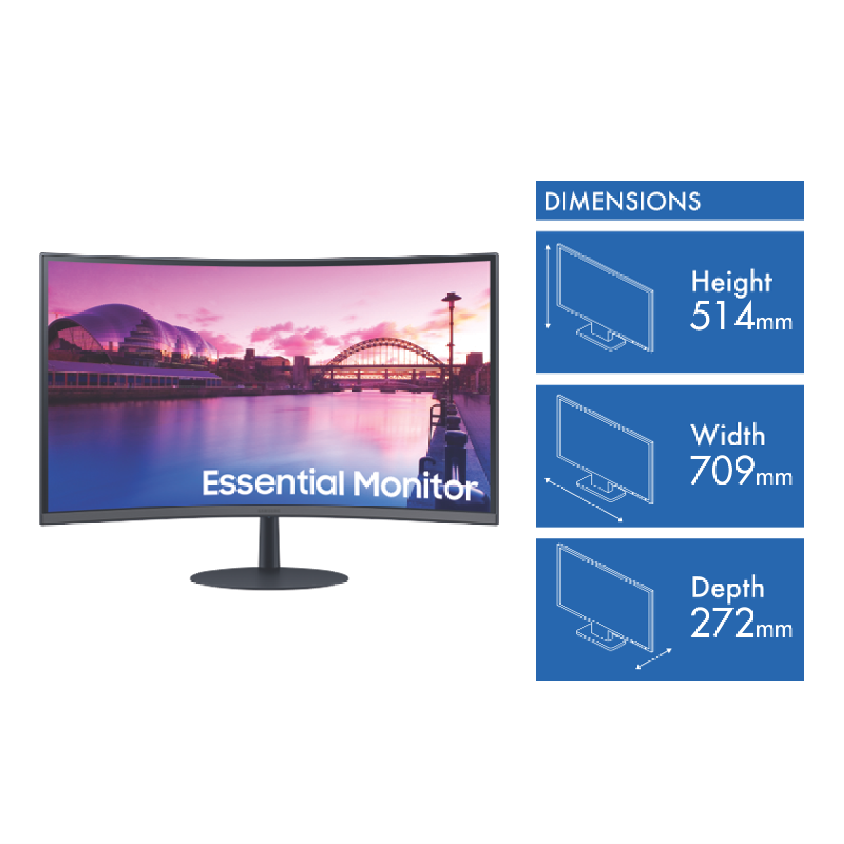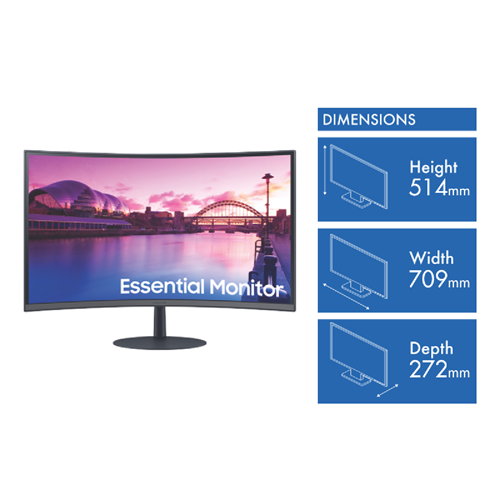 Immerse yourself in vivid visuals and crisp details with the Samsung 32 S39C Curved Monitor. This 27 LED VA screen delivers Full HD 1920 x 1080 resolution across its gently curved display for an immersive viewing experience. AMD FreeSync technology enables smooth tear-free gameplay by synchronizing the refresh rate with your GPU. Tilt swivel and adjust the height to find your ideal viewing position. With a 3000:1 contrast ratio 250 cd/m2 brightness and 4ms response time this monitor renders darker blacks and brighter whites for excellent picture quality. Connect via DP or HDMI and bask in the cinematic 16:9 widescreen aspect ratio. Innovative curved shape matches natural field of view for comfortable viewing. Weighing just 6.4kg this sleek modern monitor adds style to any workspace. Measuring 514.4mm x 708.8mm x 271.7mm it fits neatly into compact areas without compromising on screen size. Purchase this Samsung monitor today and enjoy immersive entertainment gaming and more. The manufacturer's part number for this product is LS32C390EAEXXY.