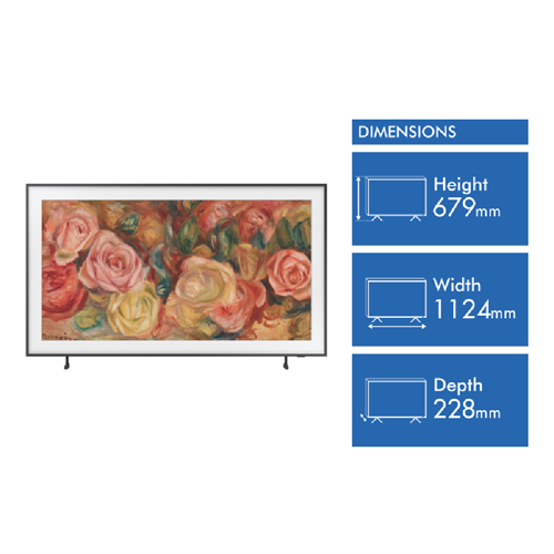 Bring cinema-quality visuals home with the Samsung 50 The Frame 4K QLED Smart TV 24. This stunning Ultra HD TV immerses you in your favorite movies sports and shows with its huge 50 screen and Quantum Processor 4K technology delivering over 1 billion shades of detailed color. The QLED screen produces pure whites and deep blacks thanks to Dual LED backlighting while the impressive 3840 x 2160 resolution gives you four times the detail of Full HD for jaw-dropping clarity. Tizen's smart TV platform lets you stream all your favorite apps like Netflix YouTube and more in gorgeous 4K. Built-in Alexa and Google Assistant provide hands-free voice control or use the included SolarCell remote. With Motion Xcelerator's smooth 50Hz refresh rate and HDR10+ support fast-moving action scenes and contrast come to life. Connect up to four devices via HDMI simultaneously.With a slim minimalist design that blends into your decor The Frame doubles as wall art in Art Mode - display curated pieces or your own photos. This 2024 model improves accessibility through the new Gaming Hub and SmartThings Hub. Backed by Samsung's 1 year warranty upgrade your entertainment with the immersive viewing of the Samsung 50 The Frame 4K QLED Smart TV. The manufacturer's part number for this product is QA50LS03DAWXXY.
