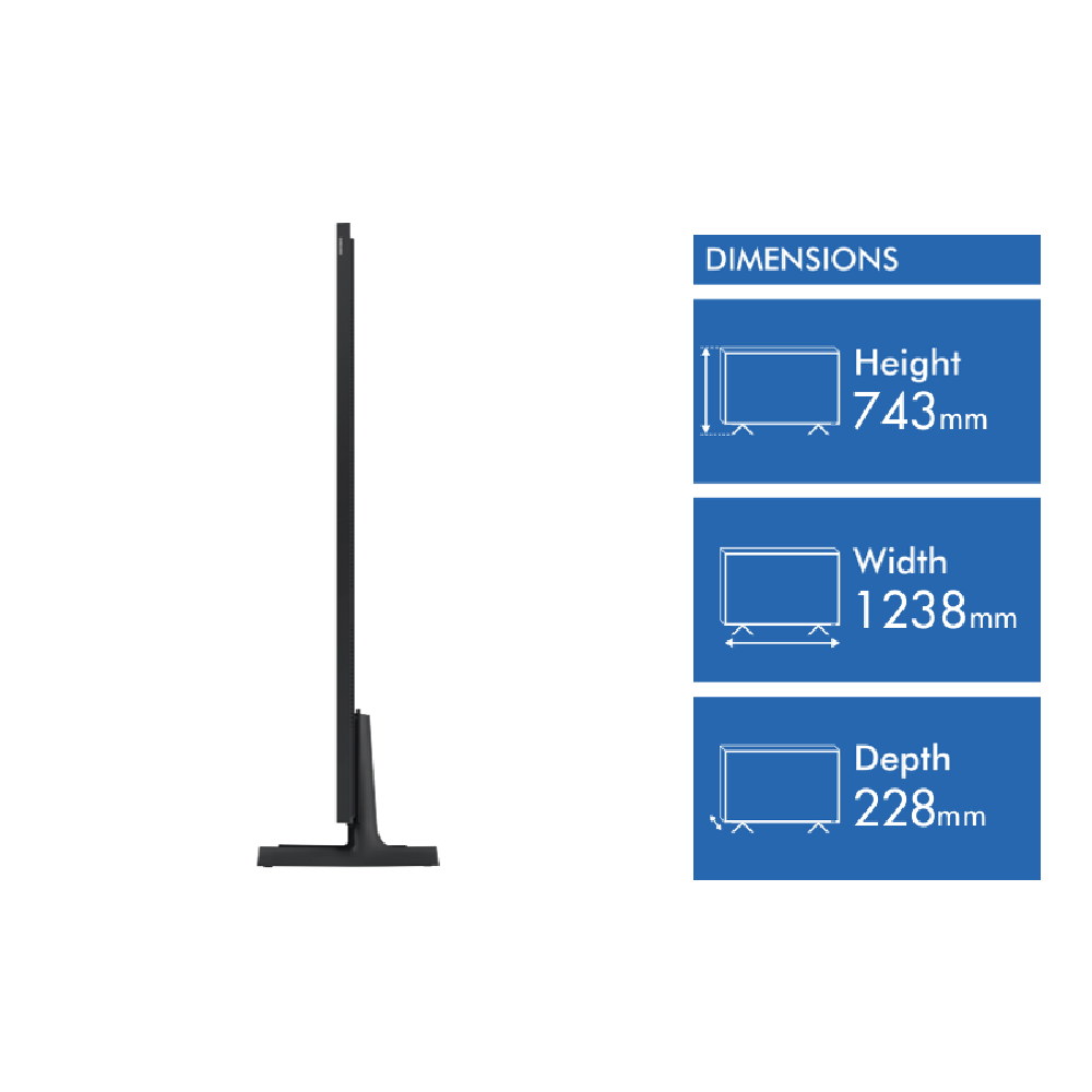 This 55-inch Frame QLED TV brings art and entertainment together with stunning 4K Ultra HD resolution and vibrant Quantum Dot Technology. The 100Hz refresh rate ensures smooth motion perfect for gaming with FreeSync Premium support. Powered by the NQ4 AI Gen2 processor it upscales content to 4K while HDR10+ delivers impressive contrast. Connect wirelessly via Wi-Fi 5 and Bluetooth 5.3 or use the multiple HDMI and USB ports for all your devices. Enjoy immersive sound with 40W output and Dolby Atmos all controlled through the Tizen operating system. Comes with a 1-year warranty. Model QA55LS03FAWXXY.