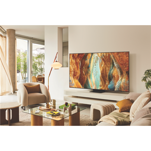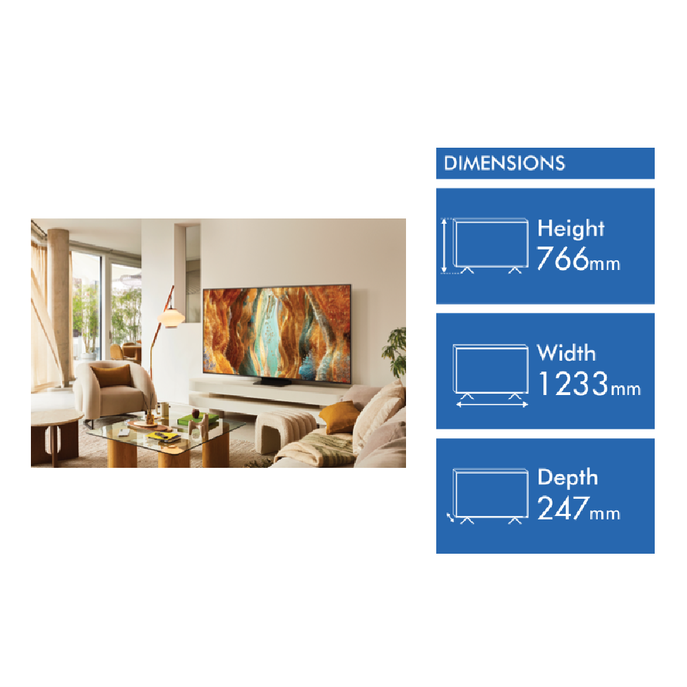 This 55-inch Neo QLED 4K TV brings your entertainment to life with stunning clarity and vibrant colours thanks to its Quantum Dot Technology. The 144Hz refresh rate ensures smooth motion making it perfect for watching fast-paced sports or playing the latest games with FreeSync Premium Pro support. Running on the Tizen operating system you can easily access your favourite streaming services while enjoying powerful 20W audio from its dual speakers. Connect all your devices through multiple HDMI ports USB connections or wirelessly via Wi-Fi and Bluetooth. Includes a 1-year warranty. Model QA55QN70FAWXXY.