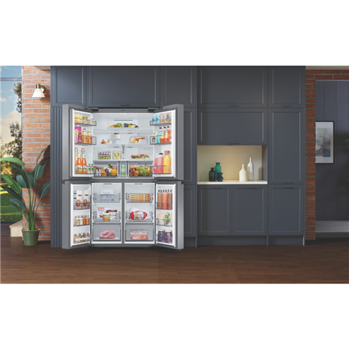 Easy access to all your drinks is available with the new Beverage Centre available with the Samsung 648L French Door Refrigerator SRF7500SB. The innovative Beverage Centre provides the autofill water jug water dispenser and drink storage all within one hygienic and handy location. The Autofill Infuser Water Jug serves cold water instantly from the fridge; for a nice change add some flavour into the infuser for a distinct pleasing taste. The Dual Ice Maker provides options to host any occasion producing both Ice Bites which quickly chill drinks and regular ice cubes. The Ice Maker can hold up to 3.1kgs of ice and is stored within the freezer to allow increase fridge cabin space. The Anti-Fingerprint Finish prevents left over hand marks from deteriorating the stylish look of the French Door exterior. Creating more internal fridge space is the Big Bottle Door Bins; these provideconvenient access to store a large variety of 3L and 2L bottles. Always have plenty of vegetables and fruits available to you in the large capacity Big Crispers. The Power Cool and Power Freeze features work to quickly cool or chill newly stored foods or drinks. All Around Cooling Technology assists maintaining cool air within the cabin by consistently checking the temperature and adjusting air flow when needed. The 648L French Door Refrigerator fits in an Australian standard 1800mm cavity and still has the capacity to contain both a dual freezer and extensive storage space.
