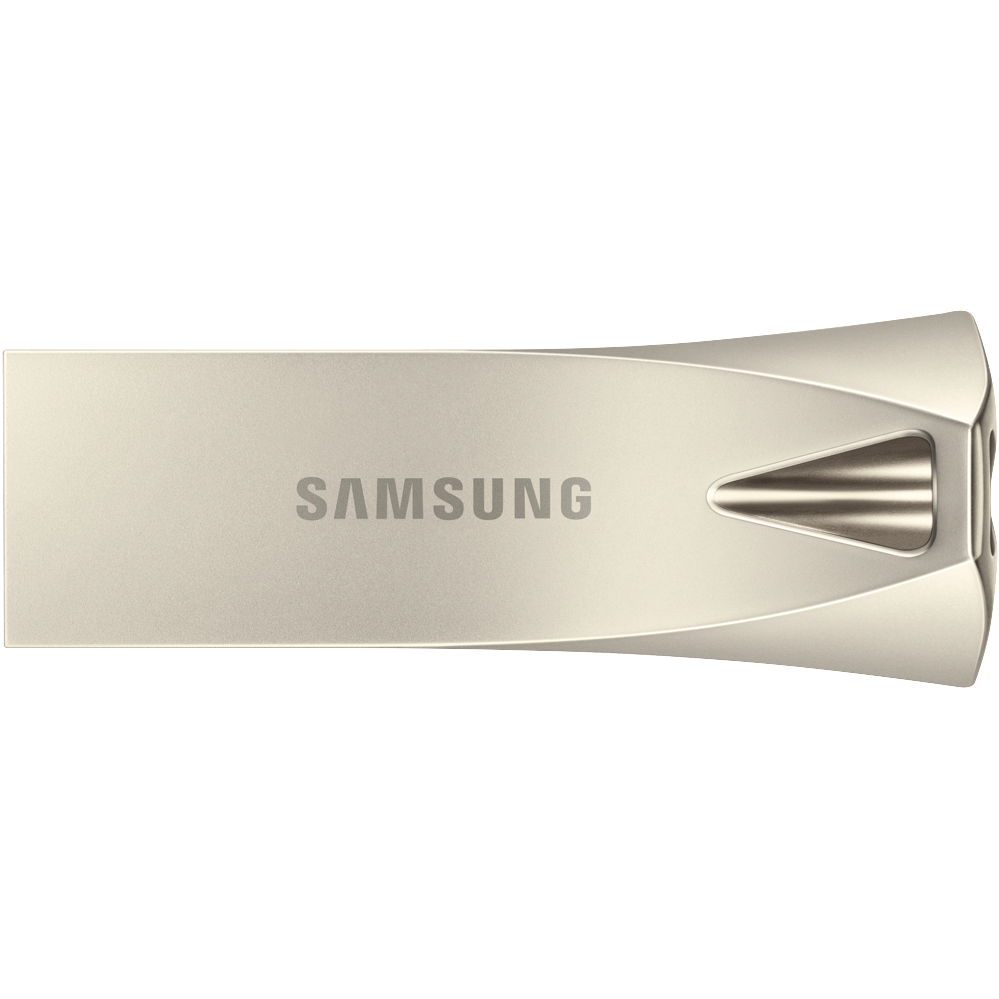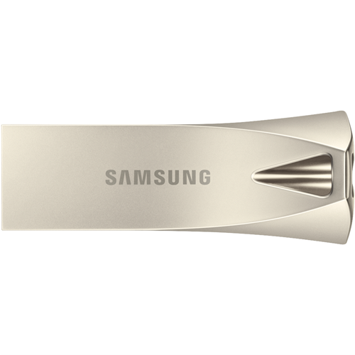 Samsung's 64GB Bar Plus USB 3.1 flash drive in champagne silver is the sleek storage solution you need. With ample 64GB capacity blazing 200MB/s speeds and a compact design this USB drive makes transferring and storing your files on the go a breeze. The USB 3.1 connection ensures fast transfer rates while the durable metal casing withstands everyday use. Whether you need to quickly move presentations photos videos or other files between devices this flash drive has you covered. The plug-and-play functionality also makes it easy to use with PCs Macs and other USB-compatible devices. So upgrade to faster file transfers and ample portable storage with the Samsung 64GB Bar Plus USB 3.1 flash drive. The manufacturer's part number for this product is MUF-64BE3/APC. Check out this speedy and stylish USB drive today.