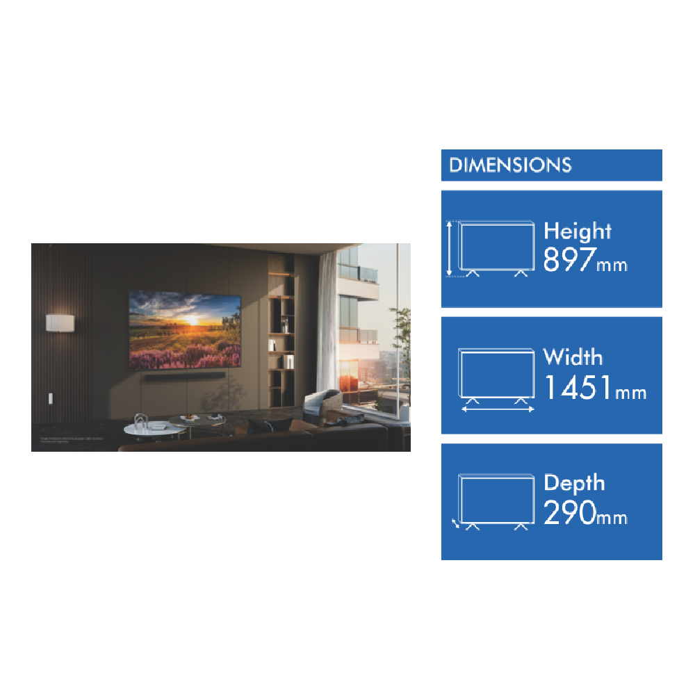 • 65 Inch QLED display with 4K Ultra HD resolution