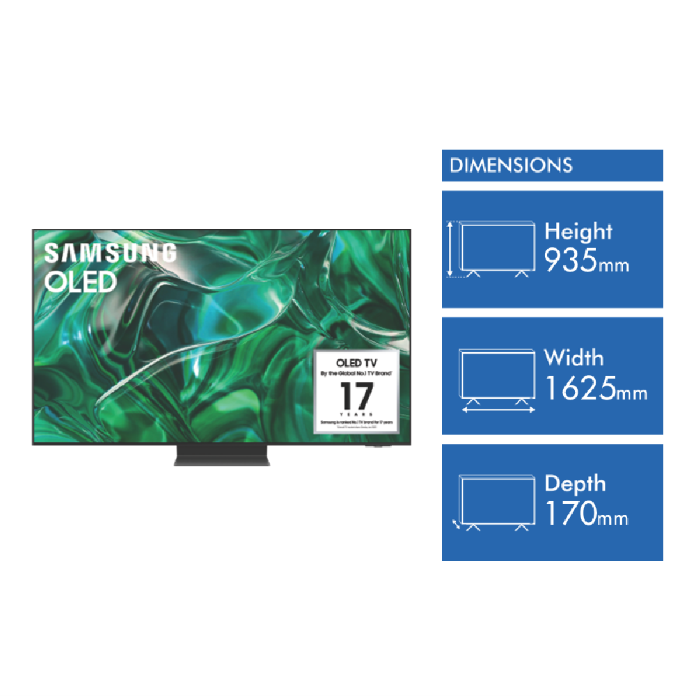 Step into an immersive viewing experience with the Samsung 65 S95C 4K OLED Smart TV 23. This quantum HDR OLED TV brings your favorite content to life in stunning 4K clarity and vivid OLED colors on its expansive 65-inch screen. Powered by Samsung's Neural Quantum Processor 4K it optimizes picture quality scene-by-scene for incredible depth and detail. With built-in Alexa and Samsung's intuitive Tizen platform you can easily find and launch shows across top streaming apps like Netflix and Disney Plus using just your voice. Gaming is smoother than ever with an ultra-responsive 100Hz refresh rate and AMD FreeSync Premium Pro support. Four HDMI ports make connecting devices a breeze. And you can elevate your audio with Dolby Atmos compatibility. With Anti Glare technology to reduce reflections and an Ultra Viewing Angle for clear images from any seat in the room this brilliant OLED TV takes your home entertainment to the next level. Bring home the cinema-quality viewing of the Samsung S95C today. The manufacturer's part number for this product is QA65S95CAWXXY.