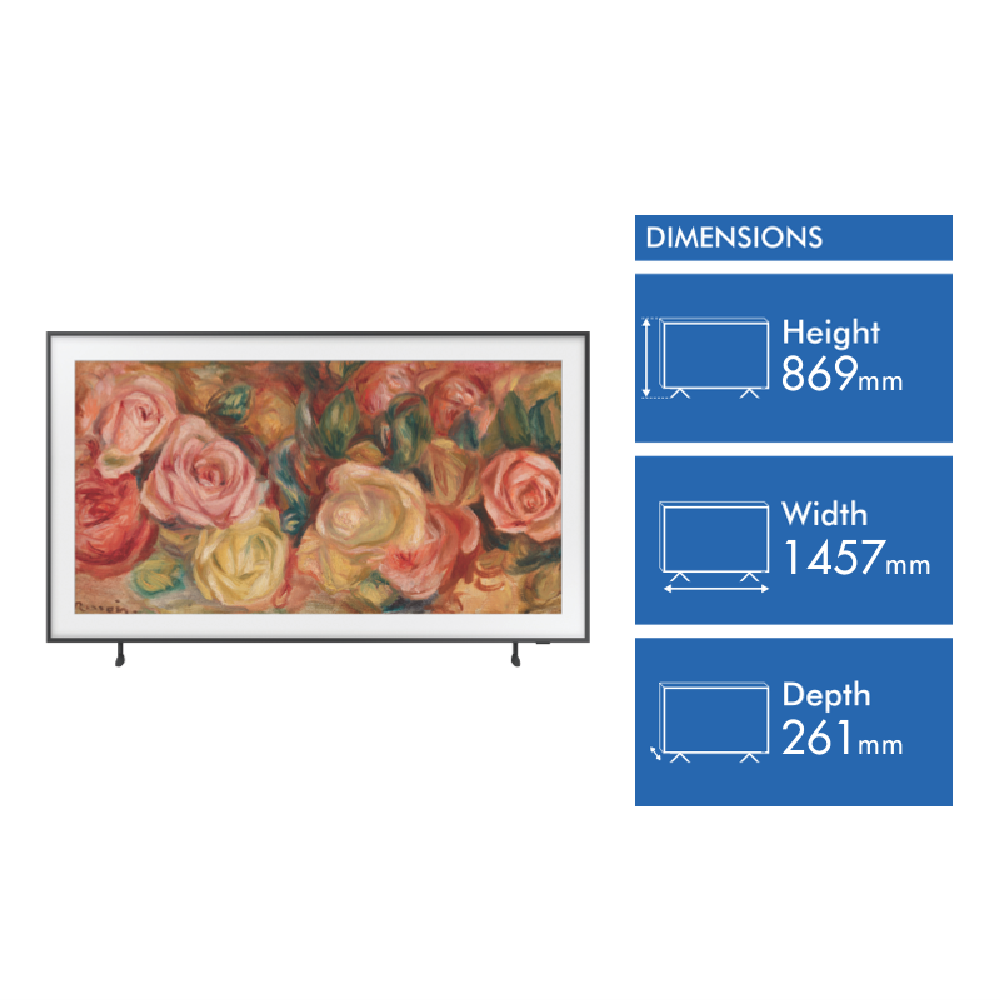 Give your entertainment area a stylish upgrade with the new Samsung 65 The Frame 4K QLED Smart TV 24. Equipped with Quantum Processor 4K technology and a brilliant QLED display this 2024 model delivers incredible 4K resolution for lifelike clarity and vivid colors. The huge 65-inch screen and 3840 x 2160 resolution immerse you in your favorite movies sports and shows. Tizen Smart TV platform provides quick access to popular apps like Netflix Stan and YouTube. Alexa and Google Assistant are built-in for hands-free voice control. With sleek customizable bezels Ambient Mode and Art Mode this TV doubles as lifestyle-elevating wall art when you're not watching. Weighing just 22.8 kg it's easy to mount. Connectivity is a breeze with 4 HDMI and 2 USB inputs. Backed by Samsung's 1 year warranty this is the latest in smart 4K TV innovation. With Quantum Processor 4K a massive 65-inch QLED screen built-in voice control and a huge entertainment app library the 2024 Samsung The Frame makes an inspired addition to any living room. The manufacturer's part number for this product is QA65LS03DAWXXY. Bring home the future of television with this brilliant smart TV today.
