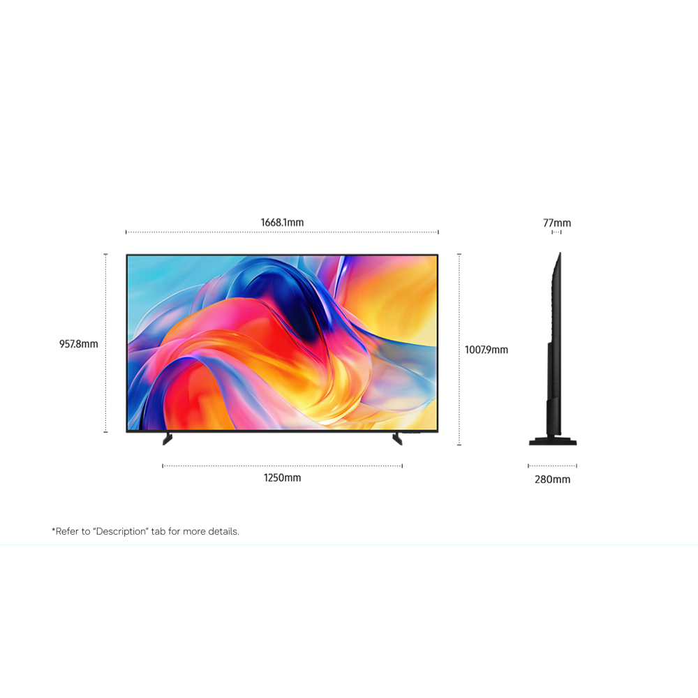 Step into a world of vibrant detail with this 75 inch Samsung M70H Mini LED 4K Smart TV where the combination of Mini LED technology and a crisp 4K resolution brings every scene to life in your lounge room. Imagine watching your favourite movies or sports with support for HDR10 Plus so colours pop and shadows look more real while the Mini LED Processor 4K keeps everything running smoothly. If you love gaming you ll appreciate how this TV is gaming ready and offers 4K upscaling making every session sharp and immersive. Streaming is a breeze thanks to built-in Wi-Fi 5 and Bluetooth 5.3 plus you can connect all your devices with four HDMI ports and a USB-A input. The Tizen Smart TV system gives you access to your favourite apps and you can control it hands-free with Google Assistant or Alexa. With a 5.5 star energy rating you save on power while enjoying rich 20 watt sound. The TV sits beautifully on its stand or can be wall mounted with a 400 by 300 millimetre VESA mount and it weighs just over 22 kilograms with the stand. Covered by a one year manufacturer s warranty this is model UA75M70HAWXXY. Bring your home entertainment to the next level and see the difference for yourself.