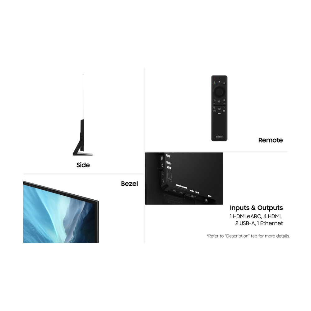 Imagine settling in for movie night and seeing every detail come alive on a massive 77 inch OLED screen where self-lighting pixels and HDR10+ bring out vibrant colours and deep blacks. The Samsung S90H 4K Smart AI TV uses the NQ4 AI Gen3 Processor to make everything look sharp and smooth whether you are watching sport gaming or catching up on your favourite shows. With a refresh rate of up to 165 hertz and FreeSync Premium Pro plus G-Sync compatibility fast action stays clear and responsive so you never miss a moment. Dolby Atmos sound fills your lounge while Wi-Fi 6E and Bluetooth 5.3 keep you connected to all your devices. Tizen Smart TV makes streaming easy and you can use voice assistants like Amazon Alexa or Google Assistant hands free. You will find four HDMI ports and two USB-A connections for all your gear and with a five star energy rating you can enjoy your viewing while being mindful of power use. The TV measures 1058.6 millimetres high 1718.5 wide and 359 deep with the stand and weighs 36.6 kilograms. Covered by a one year manufacturer s warranty this is model QA77S90HAWXXY. Experience your shows and games in a whole new way.
