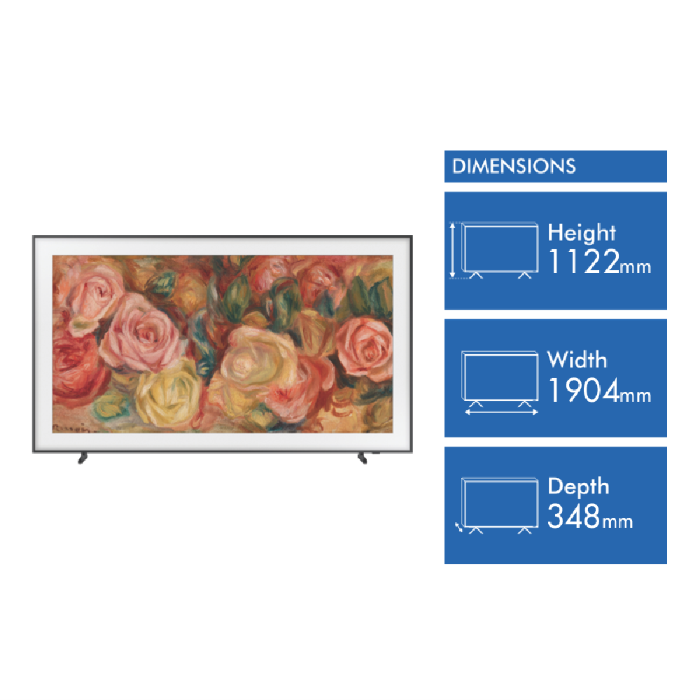 Immerse yourself in an unparalleled viewing experience with the Samsung 85 The Frame 4K QLED Smart TV. This ultra-large 85-inch screen utilizes Quantum Dot technology for over a billion shades of brilliant color. See every detail in stunning 4K resolution enhanced by HDR10+ for remarkable depth and contrast. The sleek modern design complements any décor while Art Mode displays your favorite artworks and photos when you re not watching TV. Powered by a fast intuitive Tizen operating system this Smart TV provides instant access to popular apps like Netflix YouTube Disney+ and more. Control it all hands-free with built-in Alexa and Google Assistant. With four HDMI inputs you can connect all your devices.Additional features include Motion Xcelerator 120Hz for smooth action and Supreme UHD Dimming for optimal picture performance. The QLED panel ensures wider viewing angles so everyone can enjoy the view. This 2024 model from Samsung's popular Frame series offers an immersive home theater experience. With an energy rating of 4.5 stars this TV saves on electricity bills compared to less efficient models. Weighing 45.4kg the 2022 Samsung Frame has a sleek minimalist style that impresses. QA85LS03DAWXXY is the manufacturer's part number for this product. Bring home the ultimate viewing experience with the Samsung 85 The Frame 4K QLED Smart TV today.