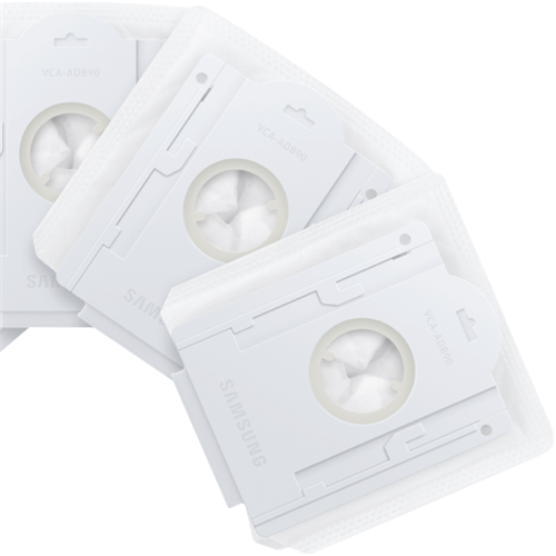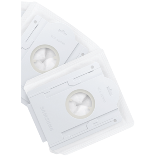 Replenish your Samsung vacuum cleaner with this 5 pack of genuine replacement dust bags. Compatible with select Samsung vacuum cleaners these high quality bags trap dirt and debris to keep the inside of your vacuum clean. The durable construction and secure seal prevent dust from escaping back into the air capturing allergens and keeping your home fresh. With 5 bags per pack you'll always have spares on hand for quick easy changes. Designed for your Samsung these authentic OEM bags optimize suction power and filtration. Ditch generic knock-offs and choose the real deal to keep your Samsung vacuum operating at peak performance. Give your floors and carpets a deeper clean while maintaining your vacuum's hardworking motor. The manufacturer's part number for this product is VCA-ADB90. For genuine Samsung vacuum bags add this 5 pack to your cart today.