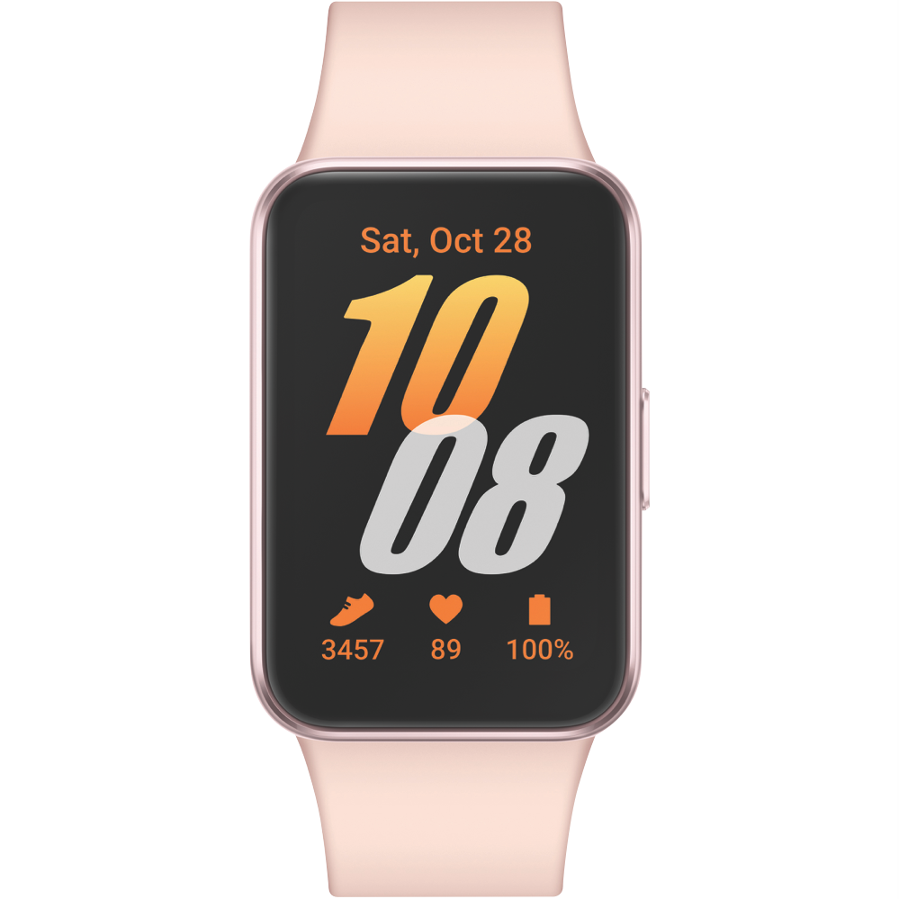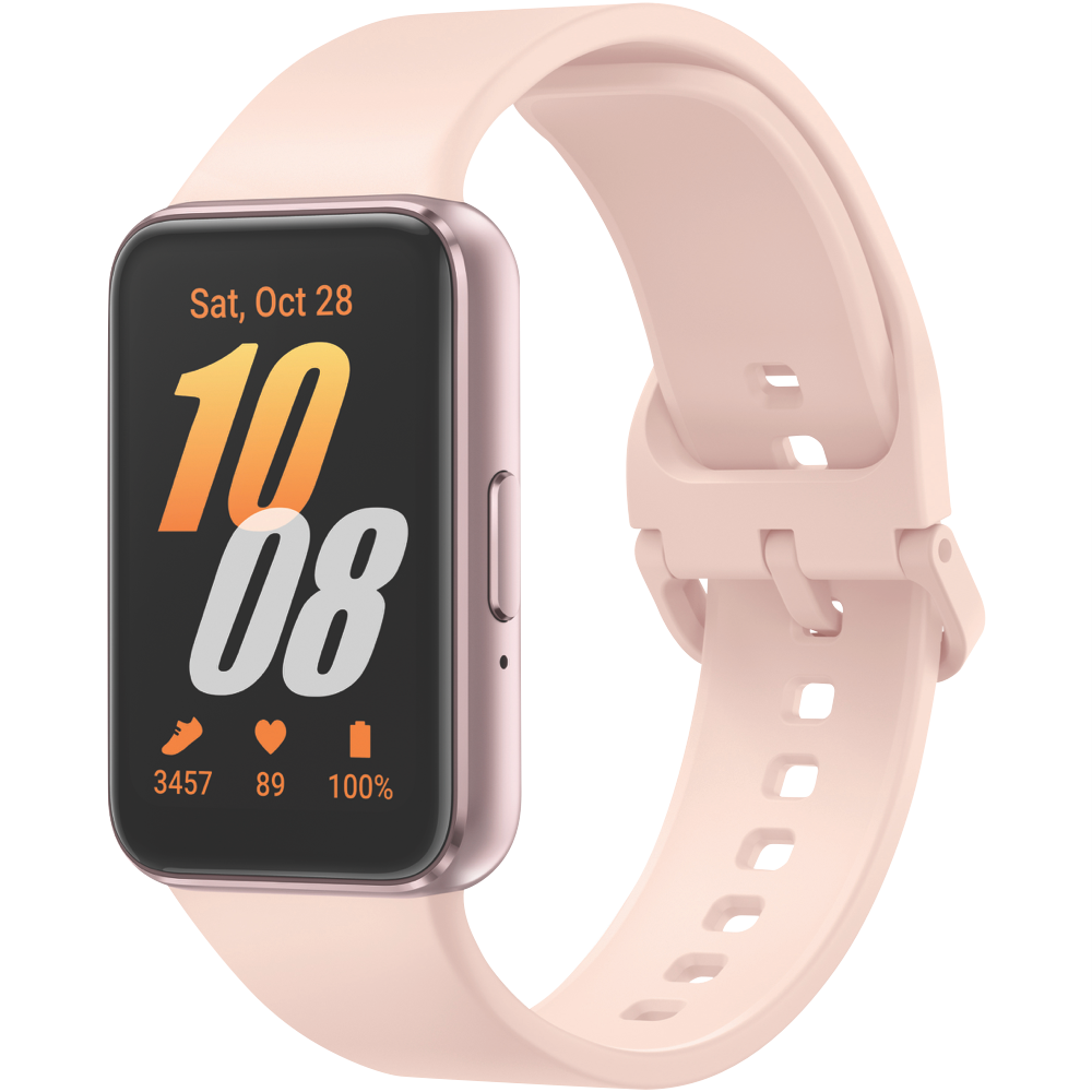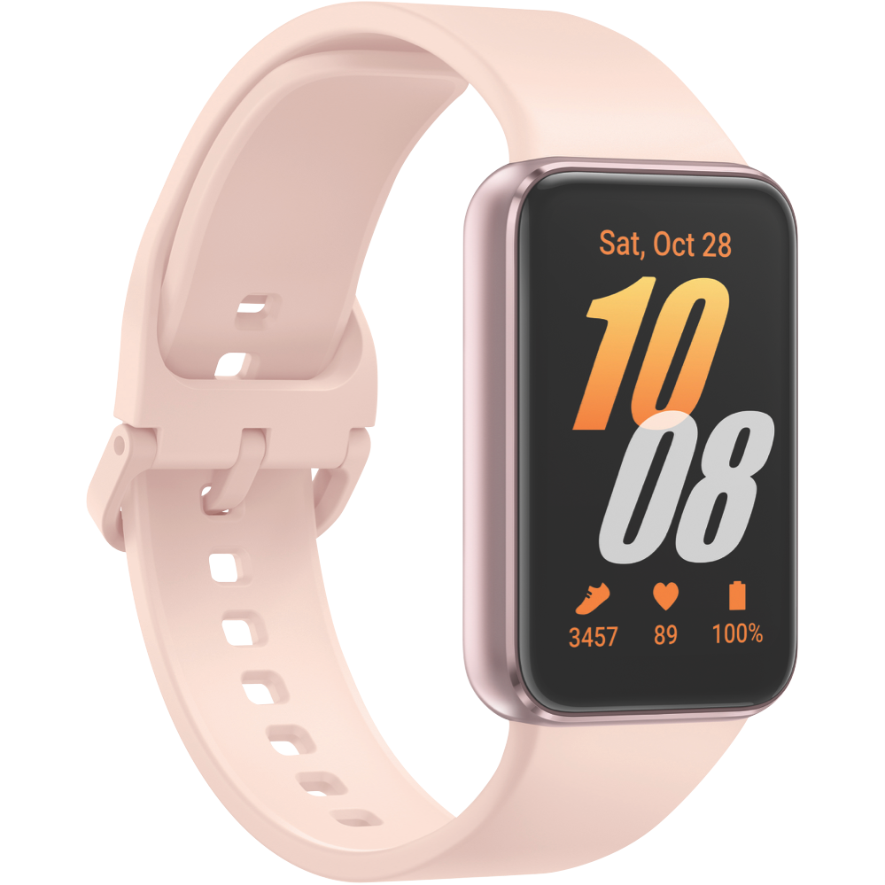 Keep track of your fitness journey with the Samsung Galaxy Fit3 Watch in elegant Pink Gold. This slim lightweight smartwatch is ready for motion with its 256 x 402 display that shows all your health stats at a glance. Track your steps with the built-in pedometer monitor your heart rate throughout the day and even analyze your sleep patterns for better rest. The impressive 208mAh battery lasts up to 13 days so you won't need to charge it constantly. With Bluetooth 5.3 connectivity you can pair it with your phone for GPS tracking during outdoor activities. It's IP68 water resistant too perfect for workouts in any weather. The watch comes with a charging cable and quick start guide all backed by a 1-year warranty. Part number: 11901326666.
