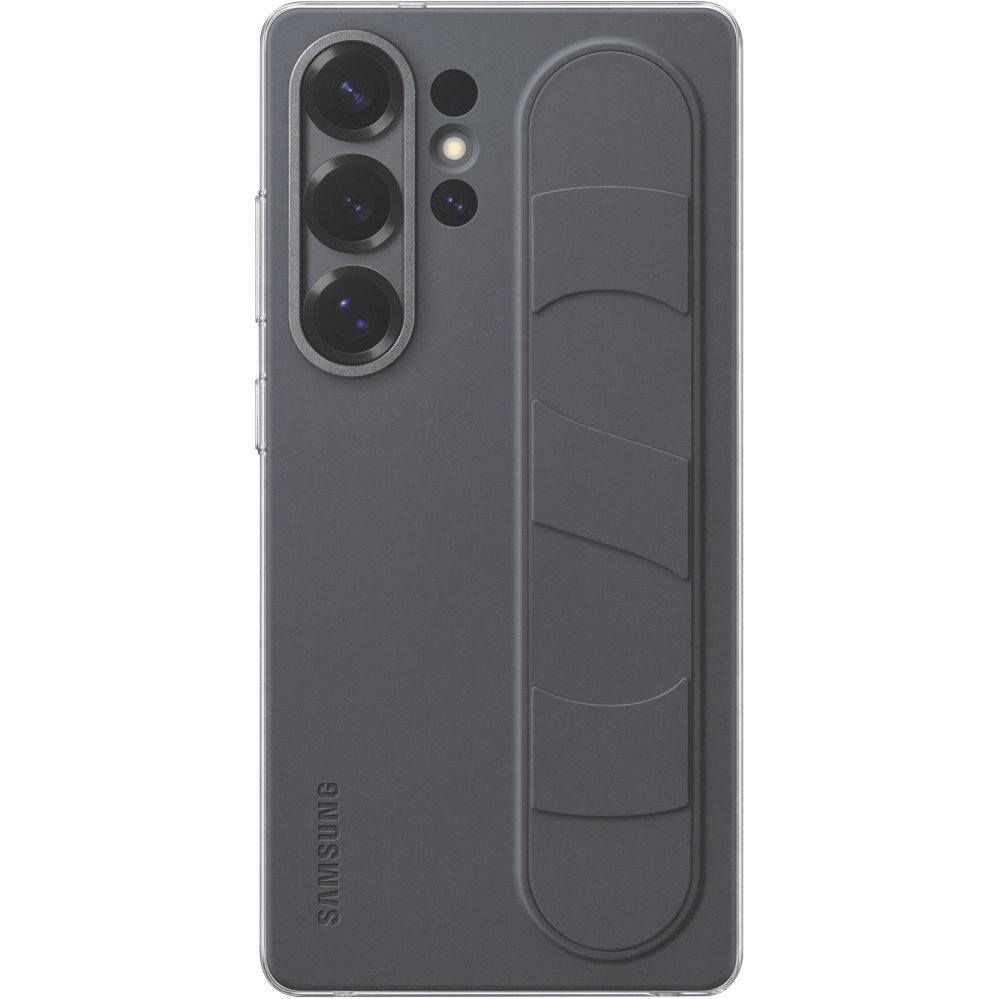 Protect your Samsung Galaxy S25 Ultra in style with this handy grip case. It's sleek black and made just for your phone. The case adds a bit of bulk - about 19mm high 8.6mm wide and 1.6mm deep - but it's worth it for the extra protection. Plus it's got a built-in stand so you can prop up your phone to watch videos or make video calls hands-free. Samsung backs it up with a 6-month warranty too. The manufacturer part number is 11901331525.