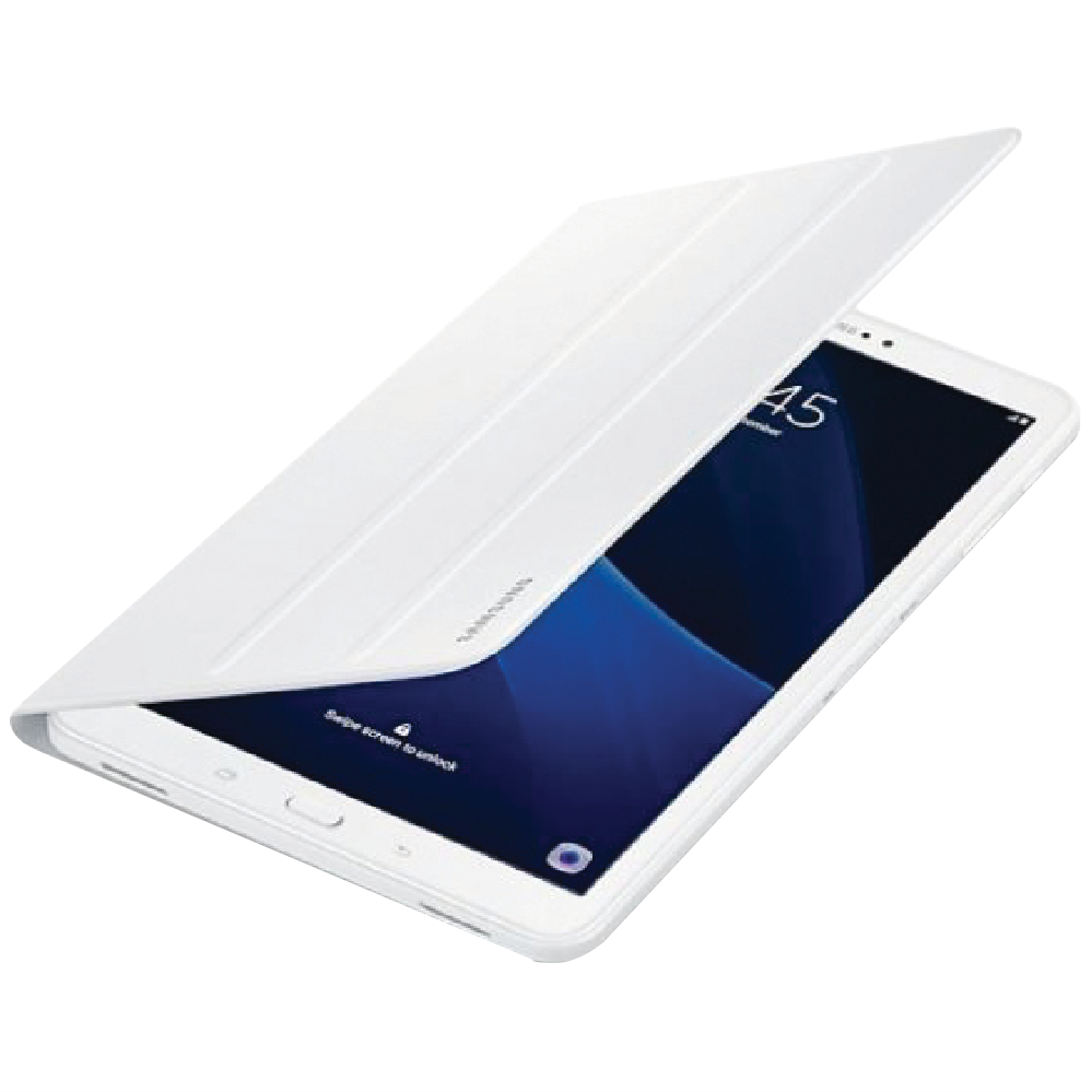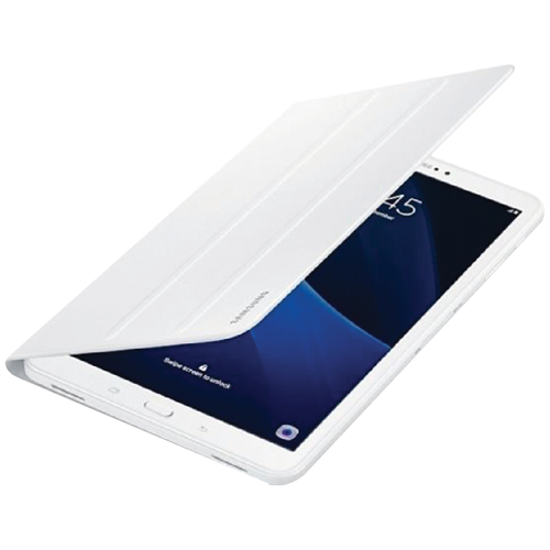 Protect and transport your Samsung Galaxy Tab A 10.1 2019 with this stylish white book cover. Made specifically for the 10.1-inch Galaxy Tab A 2019 tablet the cover securely attaches to the back and folds over the screen for full front and rear protection. The lightweight cover allows you to prop up your tablet in landscape or portrait mode using the built-in stand enabling hands-free viewing or typing. Take your tablet anywhere without worrying about damage thanks to the durable synthetic leather exterior and soft microfiber interior lining that prevents scratches. With its minimalist design and clean white color this book cover adds a touch of sophistication while keeping your device safe on the go. The manufacturer's part number for this product is 1091101727. Check out this book cover to keep your Galaxy Tab looking like new.