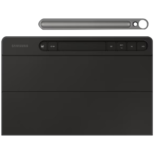 Transform your tablet into a productivity powerhouse with this sleek Black Book Cover Keyboard for Galaxy Tab S9 S9 FE S10 FE and S10 Lite. This slim lightweight accessory weighs just 281.1g while providing full protection for your device. The compact design measures 255.5mm wide 168.9mm high and only 14mm deep making it easy to slip into your bag when you're on the move. Your purchase includes a 6-month manufacturer's warranty. Model EF-DX720UBEGWW.
