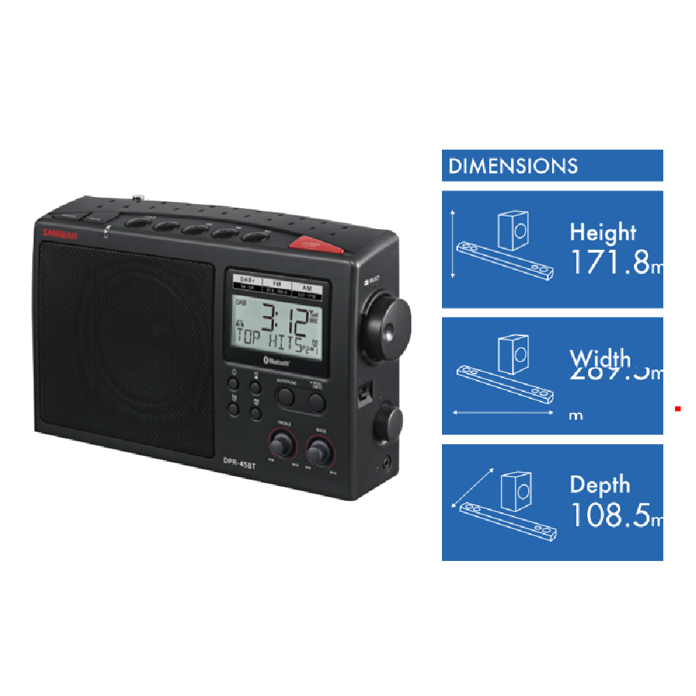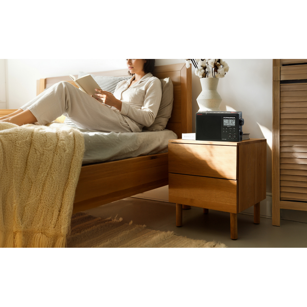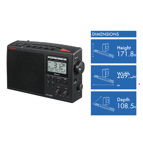 Designed with convenience in mind the DPR-45BT offers multiple smart features including alarm sleep and countdown timers plus a snooze function for mornings when you need a few extra minutes in bed. Its rotary bass and treble controls combined with Loudness enhancement ensure full-bodied sound even at low volumes. From gentle tunes in the morning to evening broadcasts every note carries rich depth and character. Whether at home at your desk or on the go the DPR-45BT lets you enjoy the sounds you love while adding warmth to your day.