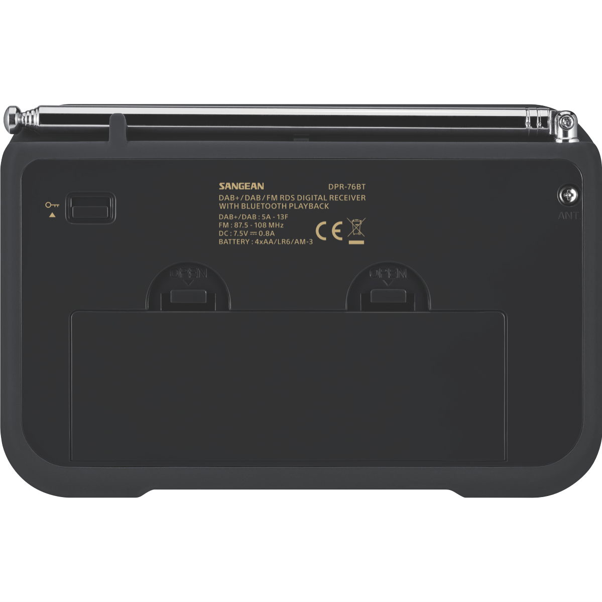 The Sangean DPR76BTMB is a Black portable DAB radio. It features 40 station presets (20 DAB+ 20 FM) and an Easy to read LCD display with backlight. it also features an Automatic station search and you also a Lock switch to avoid accidental operation. This radio Includes power supply and also plays on rechargeable and dry batteries.