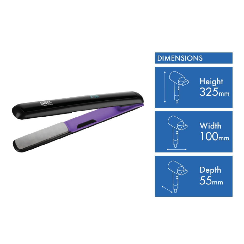 Achieve sleek smooth hair with this Sleek And Chic Ceramic Straightener that features variable digital heat settings from 130°C to 230°C. The super smooth floating ceramic ionic plates are infused with Macadamia and Argan oil for ultimate smoothness and shine while the ultra-fast PTC heater ensures one-stroke styling with quick heat recovery. For peace of mind it automatically shuts off after 60 minutes of non-use. Ready to style in seconds this lightweight straightener even works worldwide thanks to its universal voltage capability. Comes with a 1-year warranty. Model SBST-1000BK-AU.
