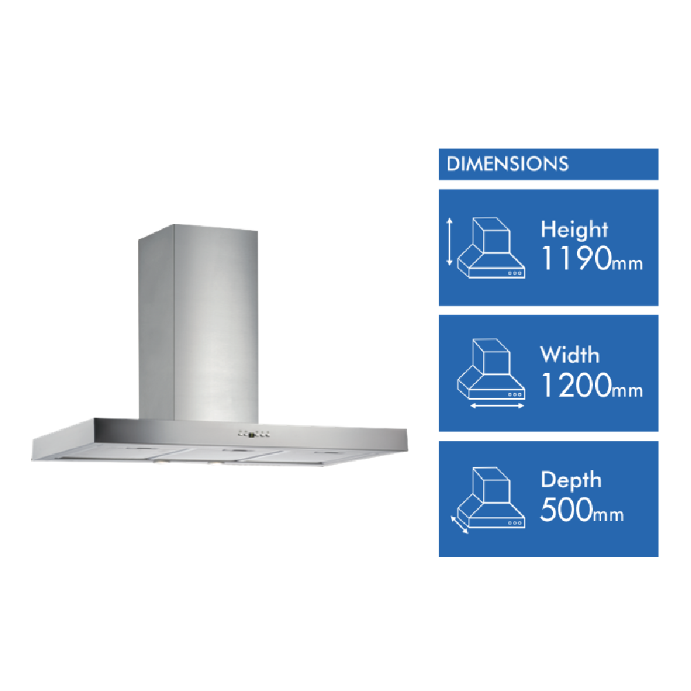 • 120cm ducted canopy with 3 x 3W LED lighting
