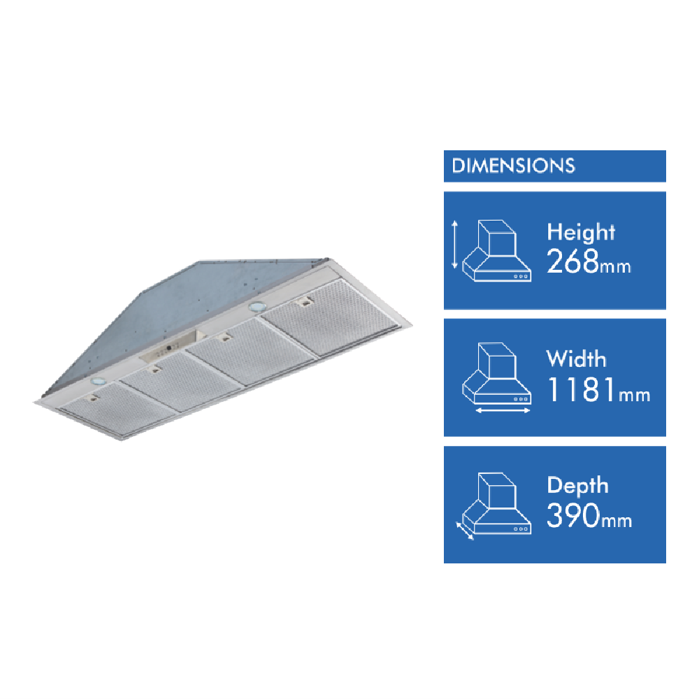 • 120cm ducted and recirculating with 2 x 3W LED lights