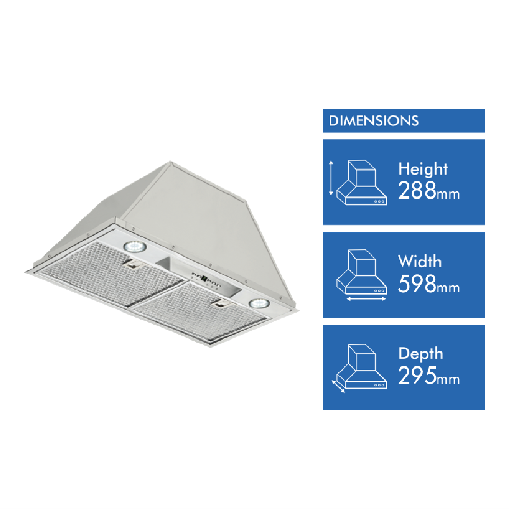 Experience the power and silence of German engineering with the Schweigen 60cm Stainless Steel Undermount Rangehood. This sleek undermount hood provides a streamlined look for your kitchen while extracting air efficiently. With a 60cm width stainless steel finish and measuring 288mm in height 295mm in depth and 598mm in width it blends seamlessly into your cooking space. The soft touch controls allow you to easily switch between the 5 fan speeds to find the right setting. The 2 LED lights illuminate your cooktop brightly. This ducted model features a 15 minute delay timer with auto shut off and a digital display for convenience. The highlight is the German-engineered Isodrive motor providing 900 cubic meters per hour of ultra quiet yet powerful extraction to rapidly clear smoke grease odors and more from the air while you cook. It includes 2 stainless steel filters for catching grease and are easy to clean. Give your kitchen powerful silent ventilation with the Schweigen 60cm Stainless Steel Undermount Rangehood. The manufacturer's part number for this product is UM1170-6ST.