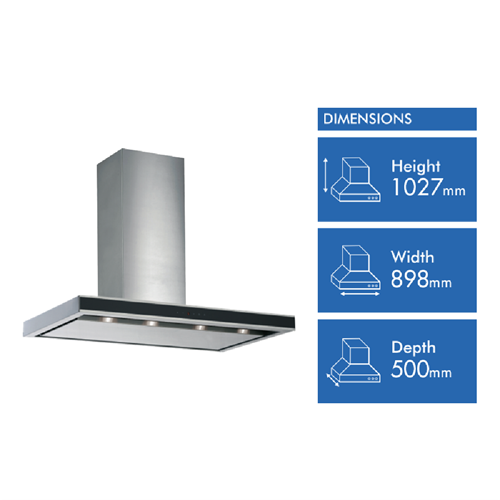 • 90cm ducted canopy with 4 LED lights