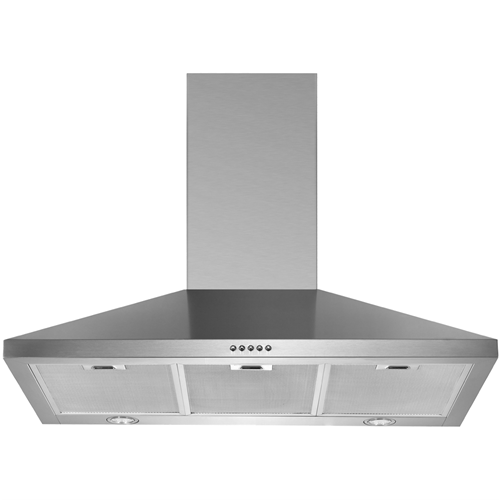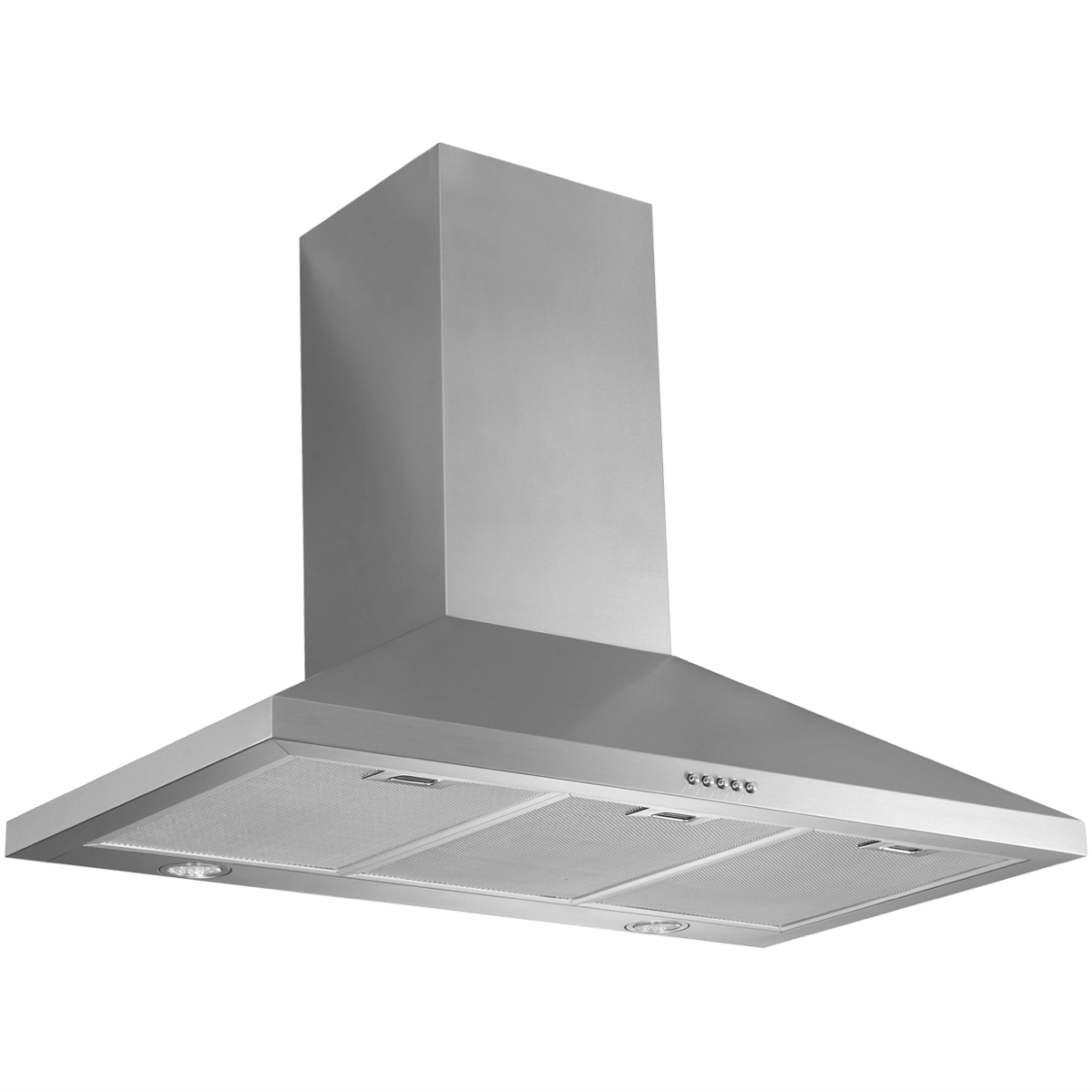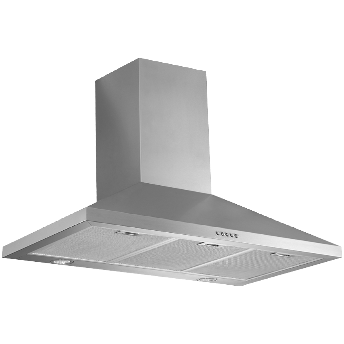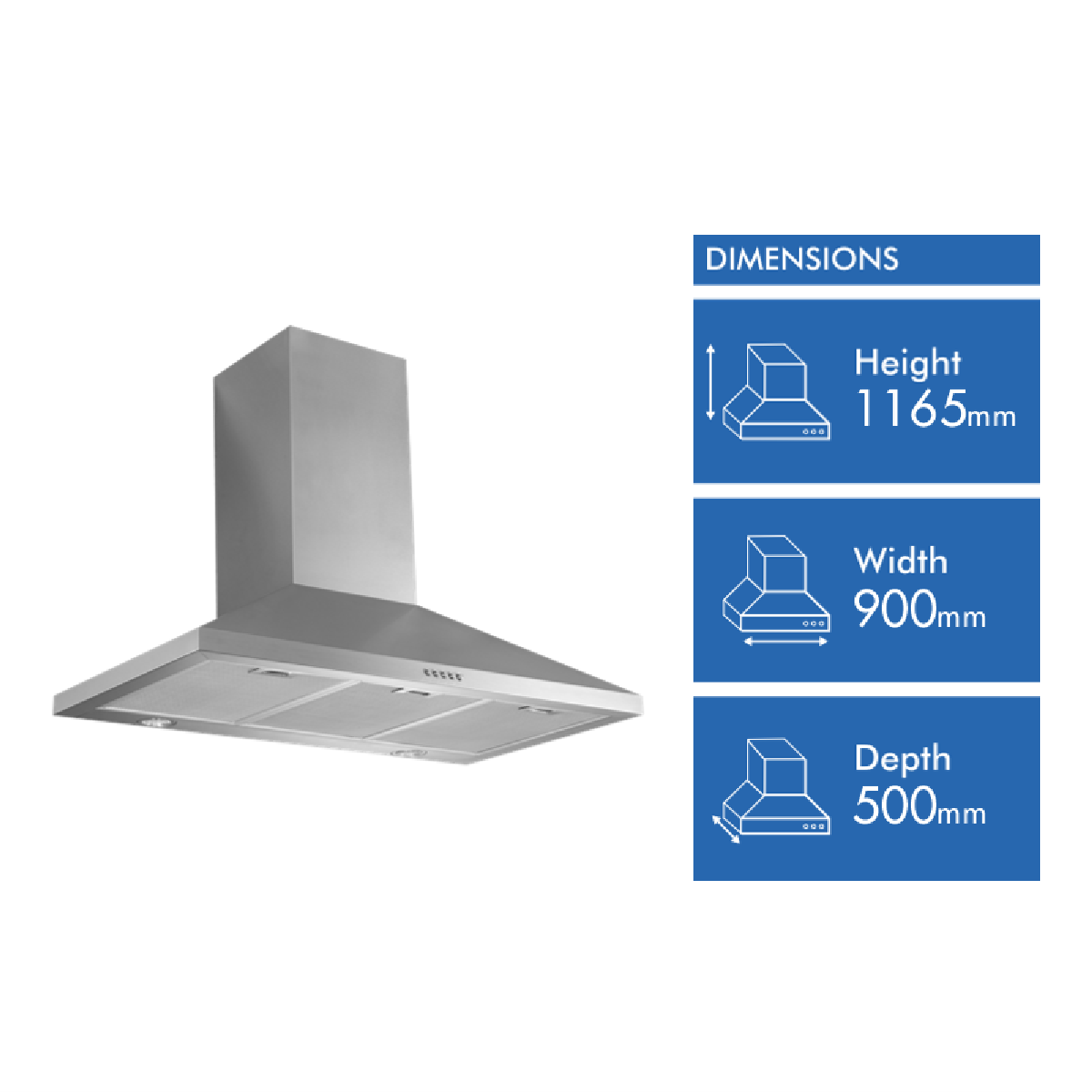 Elevate your kitchen with the sleek and powerful Schweigen 90cm Non Silent Wallmount Rangehood. Boasting a classic stainless steel design this wall canopy rangehood effortlessly removes cooking odors and smoke with its impressive 1080m3/hr extraction capacity. The single internal motor and 3 fan speeds ensure efficient ventilation while the push button controls and 2 LED lights (3W) provide easy operation and enhanced visibility. Equipped with 3 mesh filters this 90cm rangehood is built to last and maintain optimal performance. At 65 decibels it operates at a moderate noise level allowing you to focus on crafting delectable meals. The manufacturer's part number for this product is TRI-900. Experience the difference of a high-quality rangehood in your culinary space.