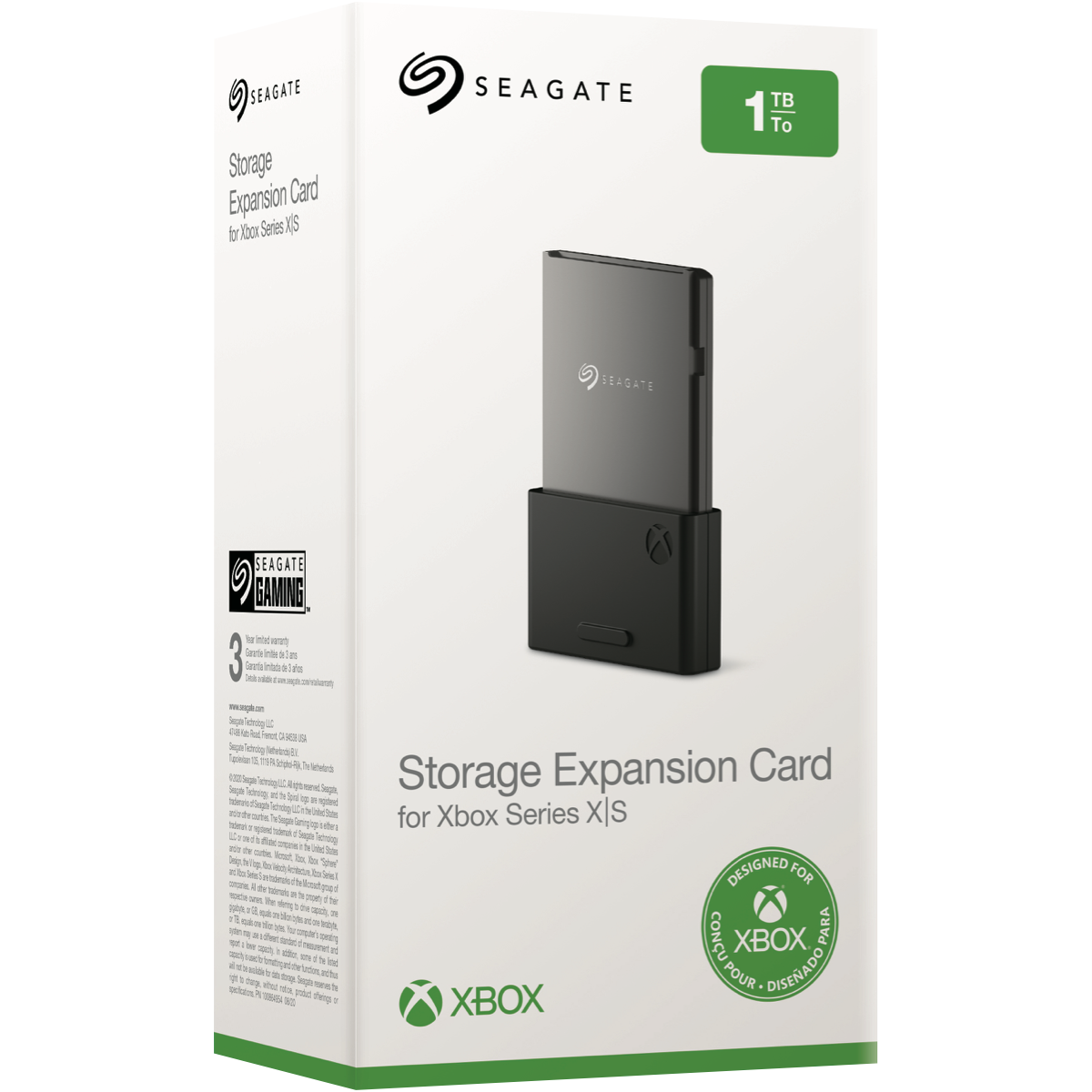 Boost your Xbox Series XS storage capacity with the Seagate 1TB Expansion Card. This sleek black hard drive delivers an extra terabyte of space to install more games without compromising performance. Designed for seamless play the Expansion Card plugs directly into the back of your Xbox console and loads games as fast as the internal SSD. Measuring just 7.8mm high 31.6mm wide and 52.95mm deep the compact Expansion Card is the ideal storage upgrade for avid gamers. With a generous 3 year warranty you can game with confidence knowing your card is covered. The Seagate reliability you trust - now in a convenient plug-and-play format. Install more of the games you love on your Xbox Series XS with the 1TB Expansion Card. The manufacturer's part number for this product is STJR1000400.