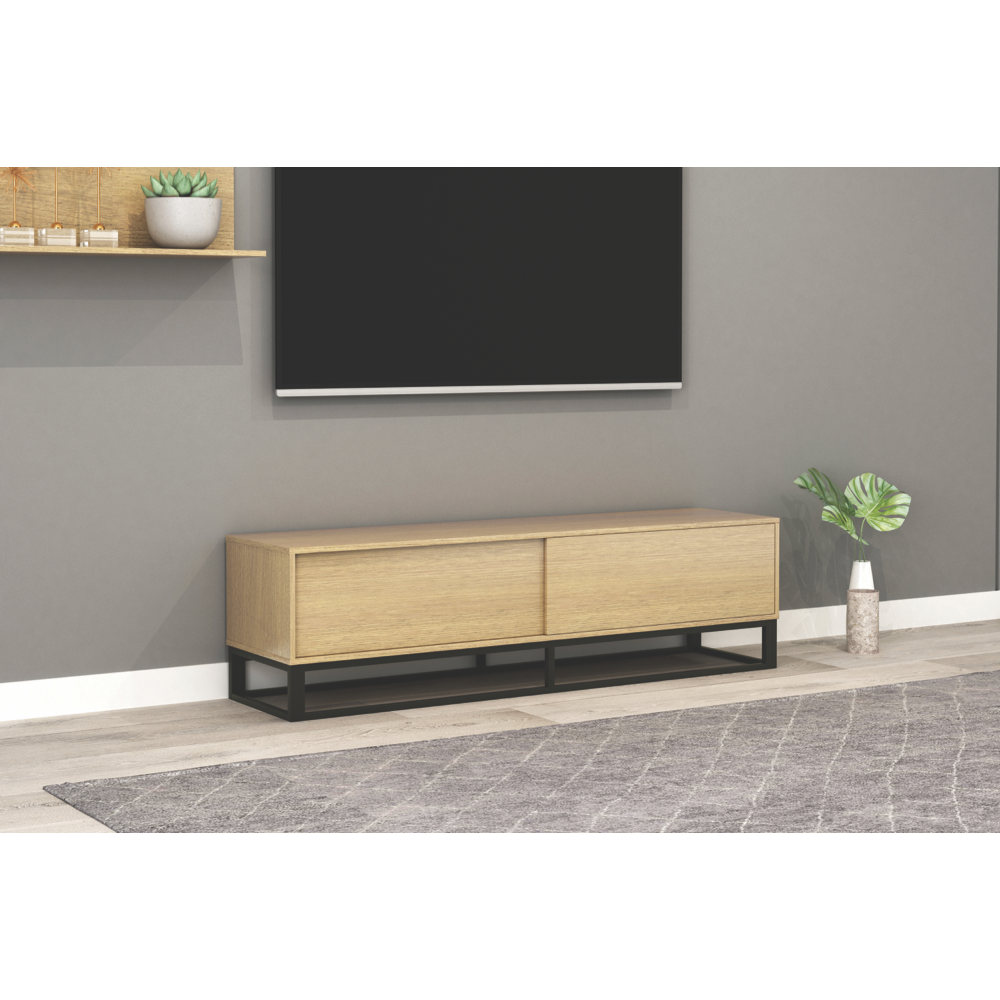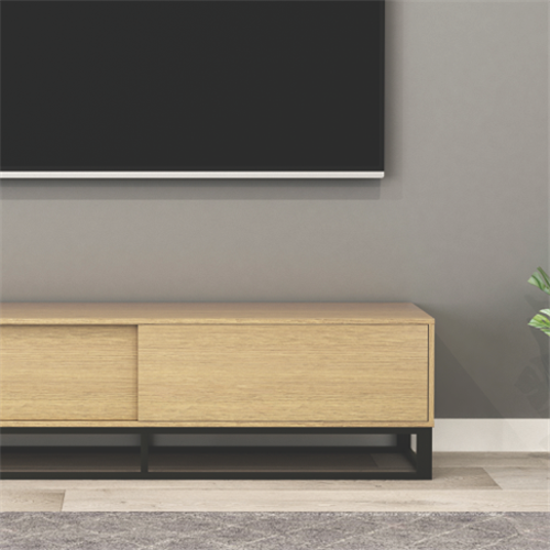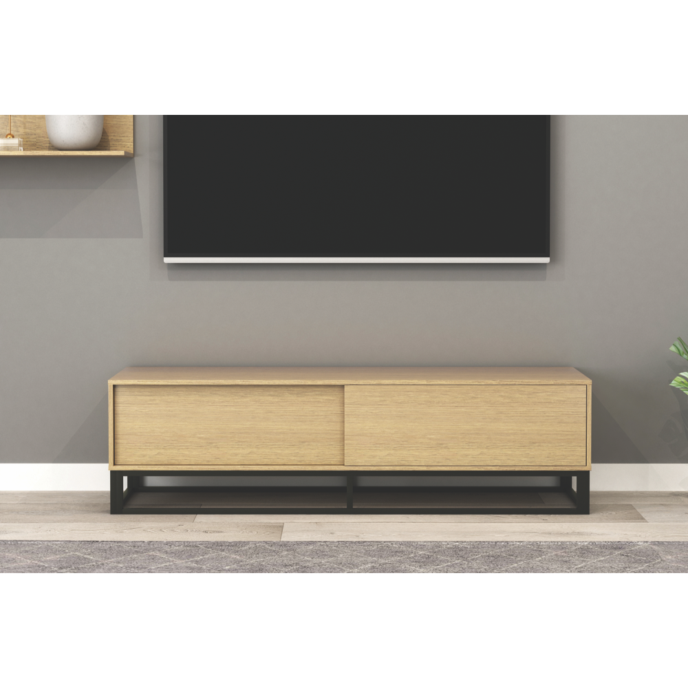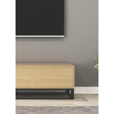 • TV cabinet in beige oak finish for living spaces